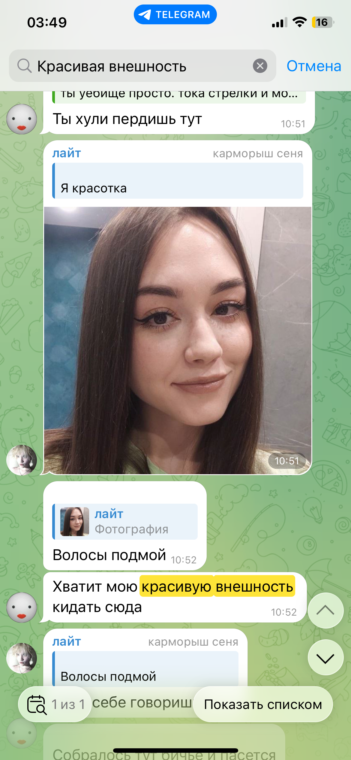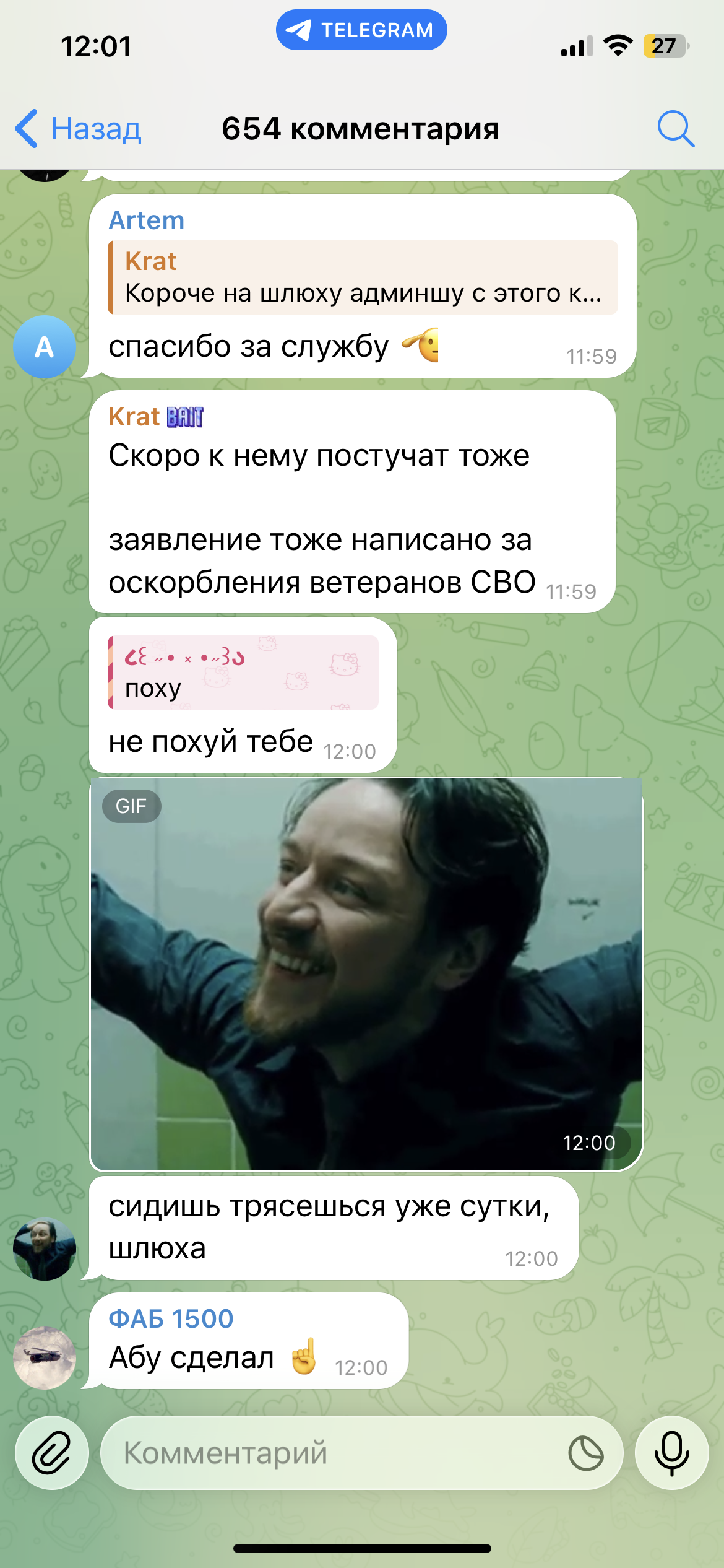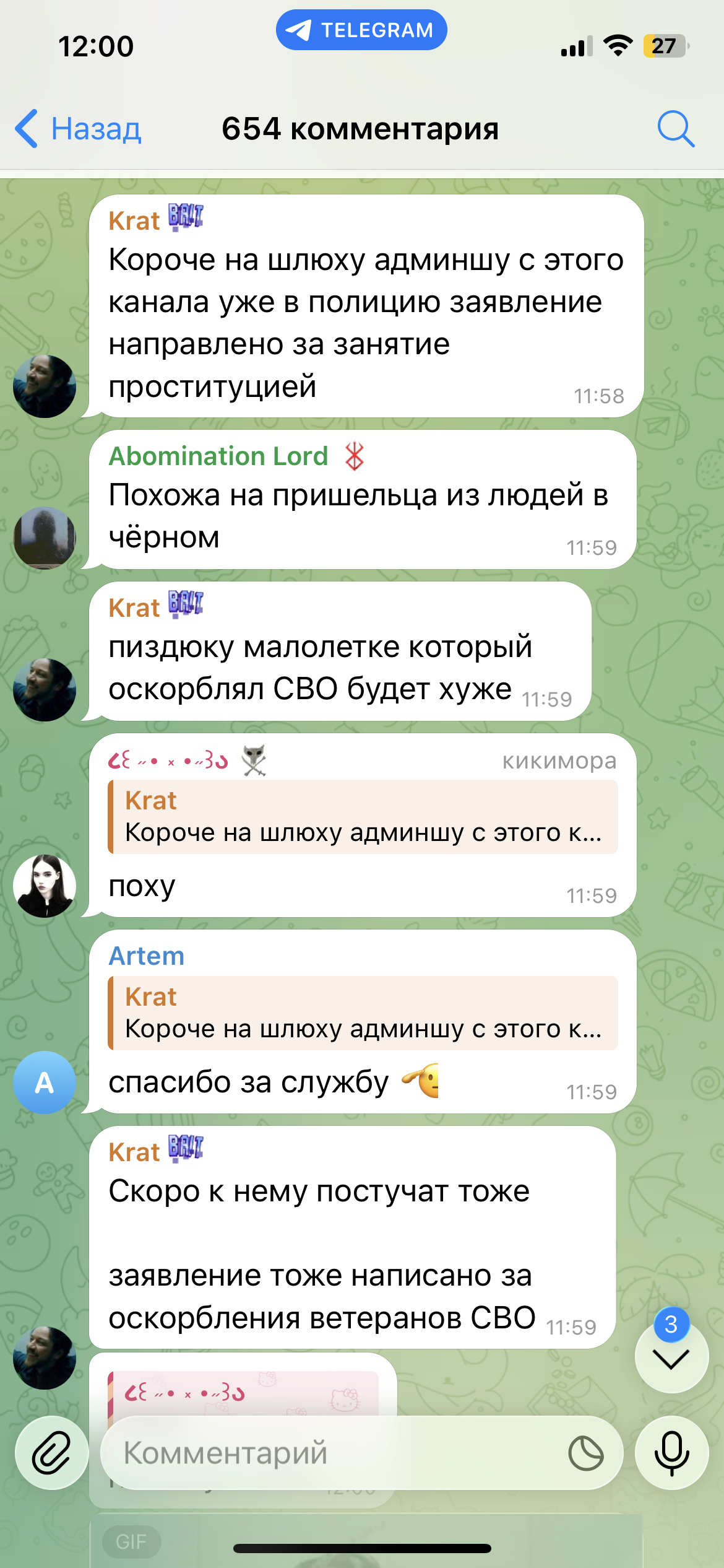 Очень смешно с потуг защитниц Караморы застебать Катюху обычными скринами ее постов в телеге. При этом на Катюху доставку действительно никаких рычагов давления от этого нет: ну оценят ее фоточки тут, ну посмеются/посочувствуют или поддержат. И все. Это Караморе и Сеньке мать пизды выпишет из-за накро-проститутского притона.