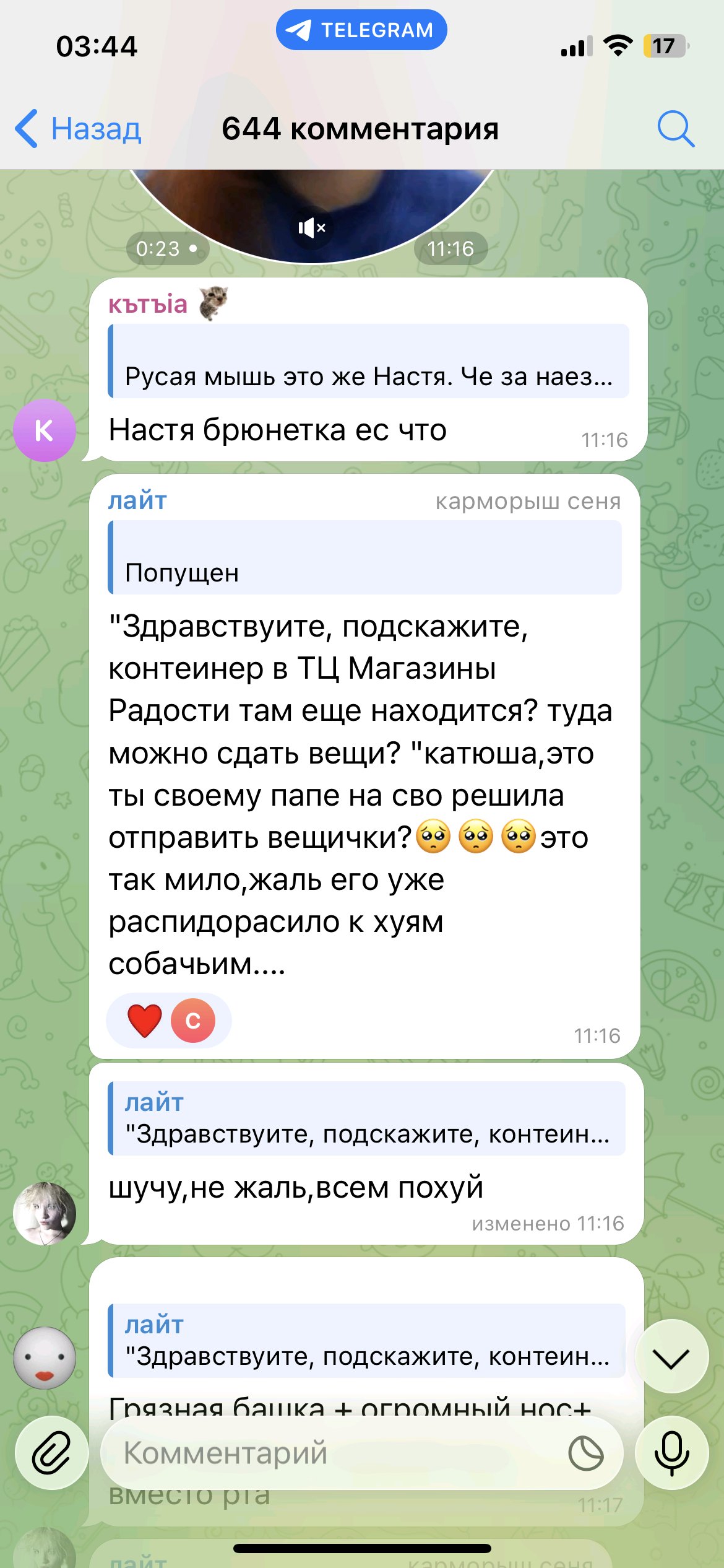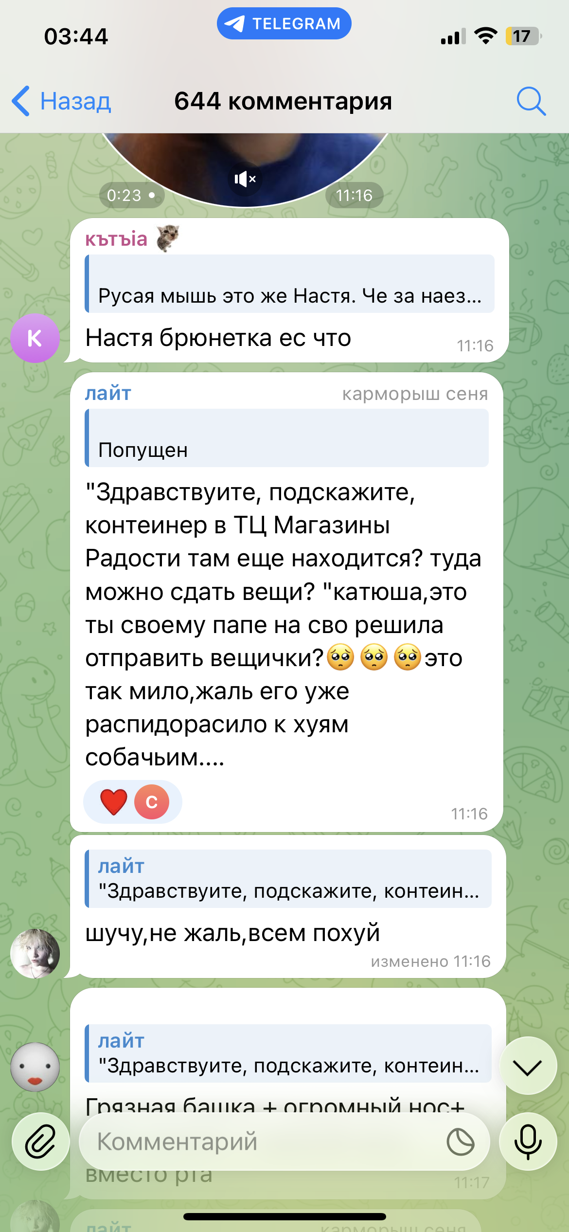 А че за срач то? Сейчас бы реагировать на хомячих и куколдов, которые перед детской аудиторией принижают труд, но возвышают торговлю телом. Какой бы агрошизичкой катя не была, тот понос, что лился из уст караморихи и ее брата не переплюнуть. Все эти тейки про зависть, сарай и прочий - бред ебучий. Просто игнорируйте хомячих, которое видят в караморихе бедную жертву, которая при этом прекрасно осознавая свой авторитет, создаёт ещё больше будущих жертв скуфов-психопатов.