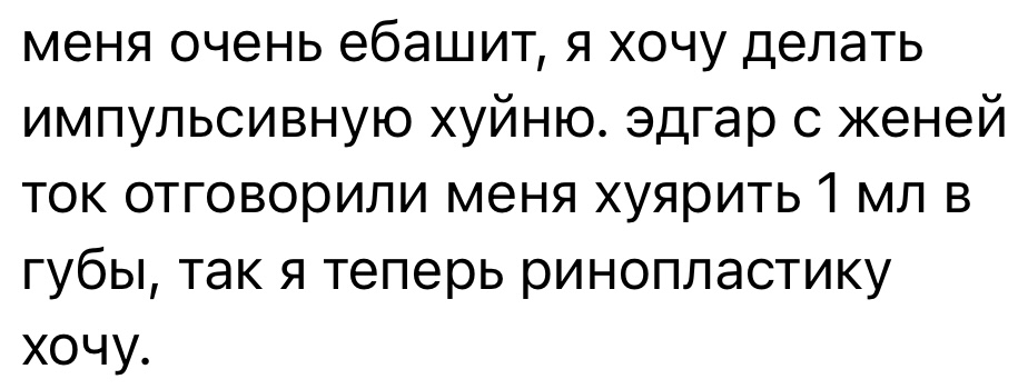 Сейм. Причём у нас таких карамор как говна за баней, но приебались именно к этой, потому что её сюда давно носят и многие знают. Я посматривала иногда посты о ней, ну кринжовенькая эджи-пиздючка, которая дрочит на декаданс и упадничество. Они с братом больше потешные чем реально какие-то опасные преступники. Среди пиздюков всегда будут такие Ани Носовы, лол.