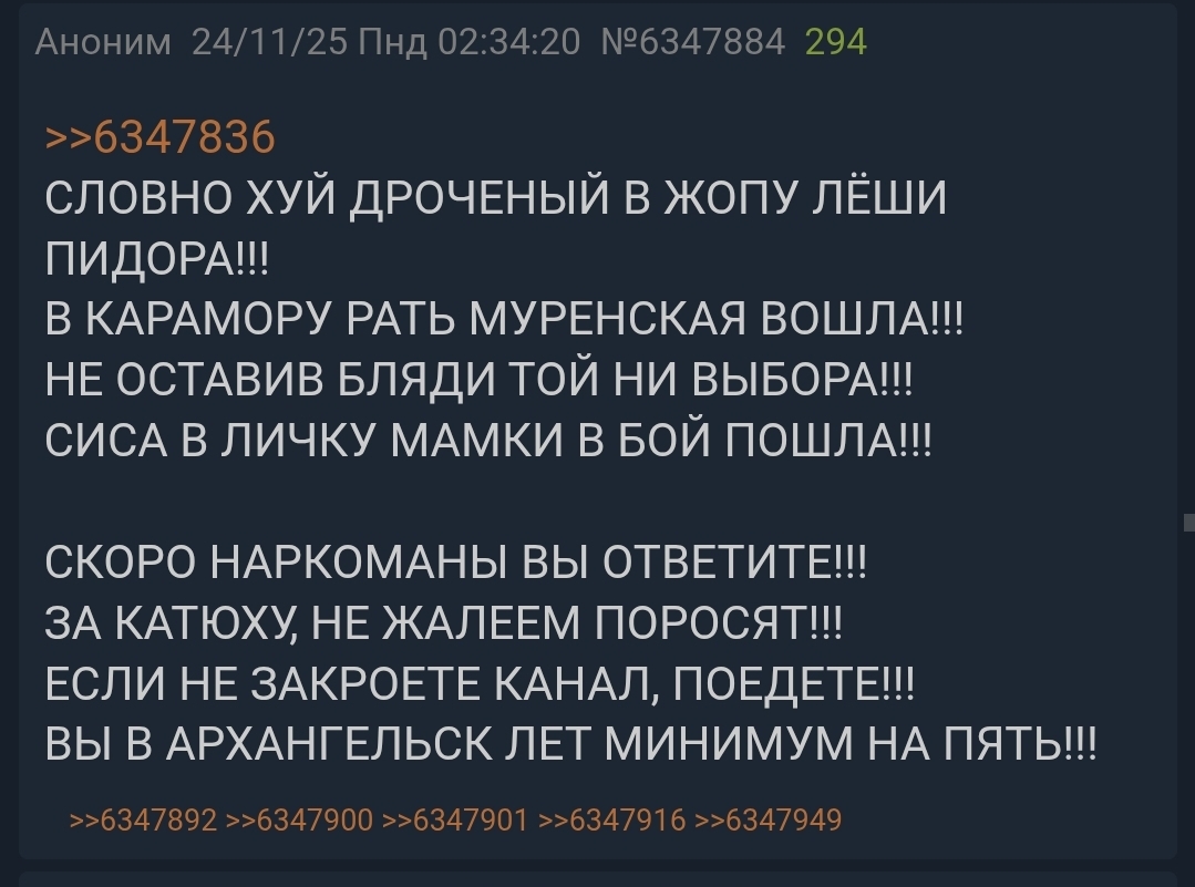 >>6348266 "Здравствуйте! Пишу с огромной тревогой по поводу вашего ученика Арсения Непомилуева.Случайно наткнулась на телеграм-канал «Карамора», который ведёт его родная старшая сестра Анастасия Евгеньевна Непомилуева (кстати, тоже ваша бывшая ученица). В этом канале Анастасия открыто пропагандирует деструктивный образ жизни: признаётся в занятиях проституцией, употреблении запрещённых веществ, снимает видео, где целуется с мужчиной в платье, унижает малоимущих и хвастается заработком собственным телом.В комментариях под постами сестры Арсений (под своим настоящим именем и фотографией) активно поддерживает её, использует сплошную нецензурную брань, оскорбляет женщин самыми грязными словами, угрожает собеседникам, позволяет себе отвратительные высказывания в адрес наших бойцов СВО и малоимущих людей. Прилагаю скриншоты — всё легко проверяется.Я хорошо помню Арсения: он был замечательным мальчиком — ходил на карате, читал стихи на школьных вечерах, рисовал, очень любил животных. Таким мы все его знали и любили. Но то, что он сейчас пишет в интернете, — это уже не подростковый бунт. Это портрет будущего уголовника, человека с полностью разрушенной моралью.Родители, судя по всему, отпускают его в Петербург «в гости» к сестре и даже не подозревают, под чьим влиянием он находится. Арсений буквально впитывает этот образ жизни: ненависть, мат, угрозы, презрение к слабым, культ лёгких денег через унижение собственного достоинства.Мы очень боимся за наших детей — вдруг он принесёт эту агрессию и эти взгляды в школу? Репутация вашей гимназии всегда была безупречной, не позволяйте одному ученику и его токсичному окружению её запятнать. Если эта история выйдет за пределы чата родителей (а скриншоты уже гуляют), будет большой скандал.Очень прошу вас срочно отреагировать: вызвать Арсения и родителей на беседу, возможно, подключить психолога и комиссию по делам несовершеннолетних. Мальчик ещё можно спасти, но время уходит очень быстро.Заранее спасибо, что не оставите это без внимания. С уважением и надеждой, (можно подписаться просто «родитель» или вымышленное имя)