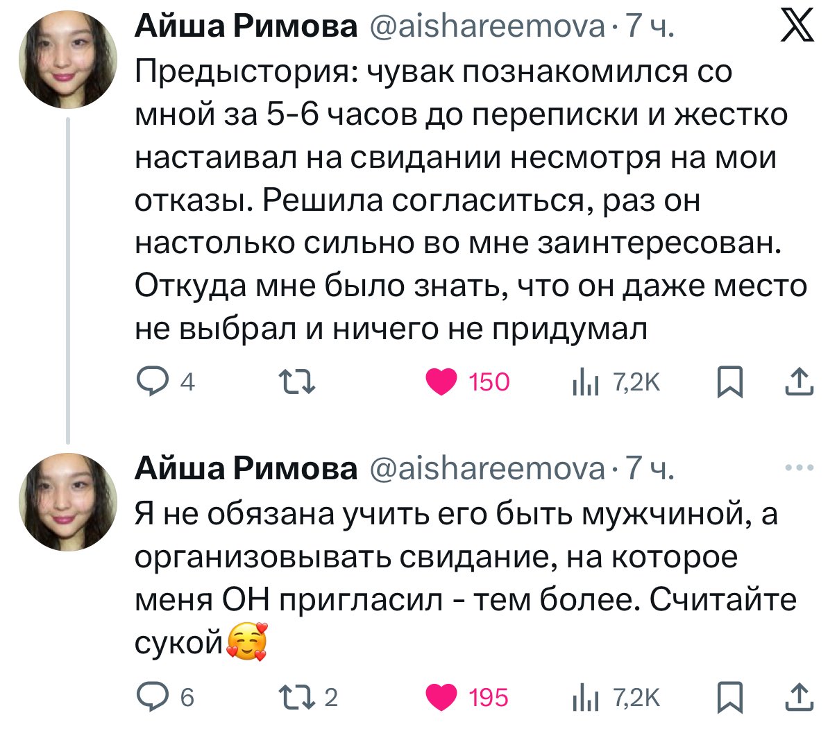 С удовольствием смотрю Шерилми, просто базовые прогоны про корейских чушков. Но бля. Она говорила что у нее не было серьезных отношений, хотя хочет, щас вообще в откровенную ненависть к мужчинам ударилась. С каждым новым видео одежды все меньше, татух больше, ненависти больше, истории как она там сосется с какими то хостами в тае все платиновее. В голове не щелкает если одеваешься как бедобашка-блядь то только такой же скам и суммонишь. Какое то слепое пятно у нее (любите меня любую ряя), та же Лиза всратее в сто раз, но выглядит как приличная девушка и цепляет своих азиатопреттиков на отношения, как бы учитывает ммм не знаю как сказать вкусы +- приличных парней раз ей нужны серьезные отношения.