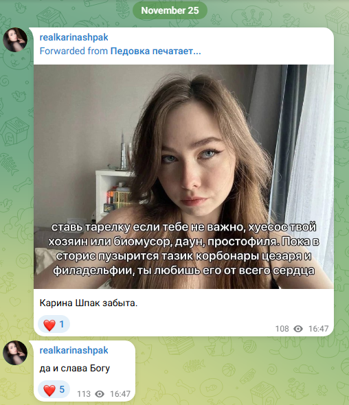 Он ещё какую то малолетку со стороны снимал и комментировал это в духе "альтушки ходят провоцируют"