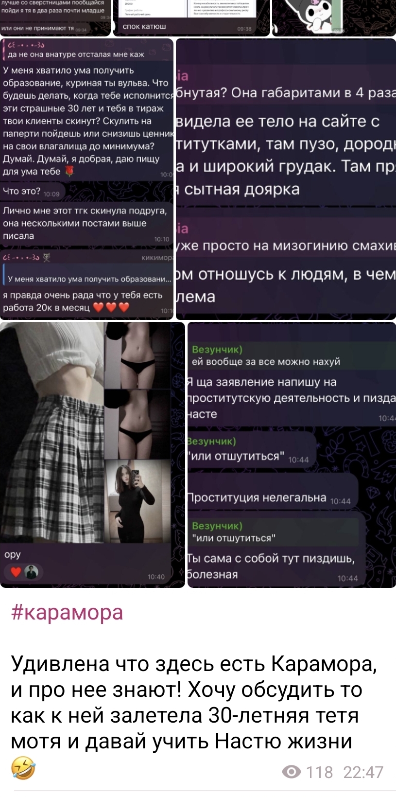 я задолго до всех событий пыталась сдеанонить карамору после ее сообщения,о том что на нее нет рычагов далвения (литералли 18летняя проститутка наркоманка). нашла только школу, говяжьего ануса и забила. сиса которая нашла гений