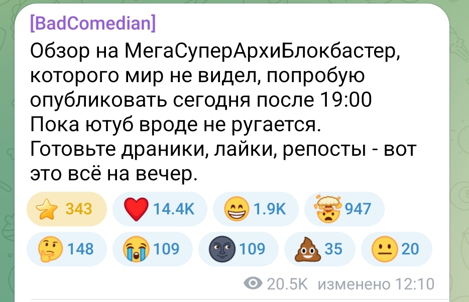 Стсы, сегодня великий день! Говжен наконец-то представит миру Катюху как свою жену! И у неё начнется совершенно новая жизнь! Готовьтесь, он там Катюху как "Баженова" указал в титрах, её звёздный час сегодня! Говжен будет всё видео с колечком прыгать на руке, мб будет даже совместный уморительный скеч! И это всё они вместе сняли в Тольятти!