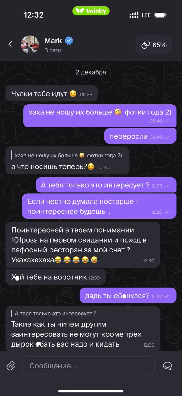 Мне самой 21лвл как же заебало мужло на сз, сука просто каждый пятый ставит себе 18-24 и пишет ЭМ НА САМОМ ДЕЛЕ НА 10 ЛЕТ СТАРШЕ и там 35+ Как же меня бесят эти протухшие долбаебы, которые думают, что у них есть шанс