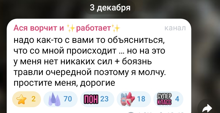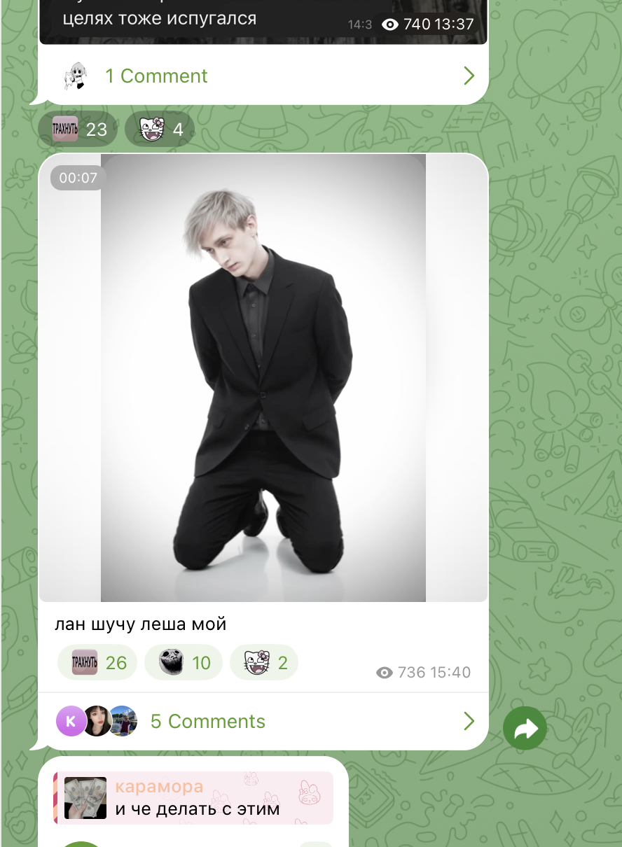 >>6359404 Я в ее канале не пасусь как ты, чтобы меня волновало что она там постит, как-то вне моих интересов подобное. А ее обнаженки, которые мне не по своей воле приходится лицезреть, ты сюда каждый день носишь, как ебанутая. Реально создайте себе отдельный загон для педочмошниц и наяривайте на свою Настю