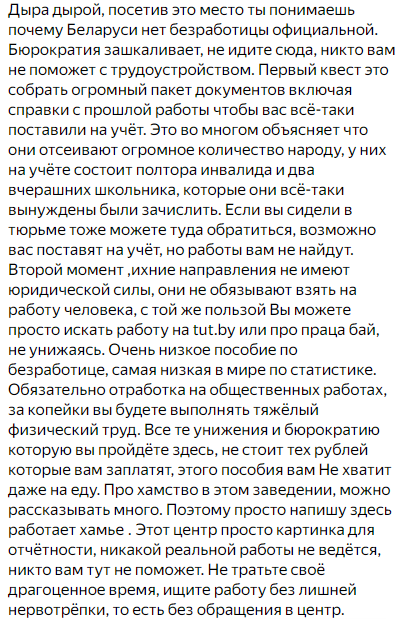 >>6456022 все что я могу сказать про вб - что это рабская работа, на тебя вывалят тонну обязанностей, никто не будет помогать, платить будут все меньше и меньше, так еще и люди говноеды будут вытирать об тебя ноги и относиться потребительски. ты физически не сможешь работать так, чтобы не получать штрафы, потому что тебя могут оштрафовать даже за то, что курьер по дороге потерял товар и не привез его на пвз - ты виновата. на ботинке где то пылинка - штраф. у меня за первые две недели накопилось штрафов на 39к. я каждую вторую смену отрабатывала бесплатно. а чтобы оспорить штраф, тебе самой нужно записать записи с камер всего процесса работы с товаром, его приемка, выдача клиенту, примерка, потом оформление в возвратную коробку. а примерка может длиться и по 20, и по 40 минут, а то и по часу. все это делаешь сама после работы, такое домашнее задание. у меня не было на это времени. я убежала оттуда когда мне три часа трахала мозг женщина которой банк заблокировал перевод. конечно, в этом же виноват сотрудник пвз. это абсолютно неблагодарная работа, которая того не стоит. я долго искала другую работу, но меня нигде не брали, поэтому попробовала в озон который рядом с домом. мне повезло с ипшником, потому что он заботится о сотрудниках. теперь у меня есть не только чайник полусломанный, но и микроволновка, холодос, кулер. в туалете всегда есть мыло и даже бумажные полотенца. на вб ничего из этого не было, ни на одном пункте. там и воды почти не было даже руки помыть. так что подумай сто раз прежде чем пойти на вб. на озоне зачастую очень маленькая зп, это на моем пункте хоть 2к за смену, что тоже мизер, но в остальных пунктах по 1600-1800. в общем подумай точно ли оно тебе надо