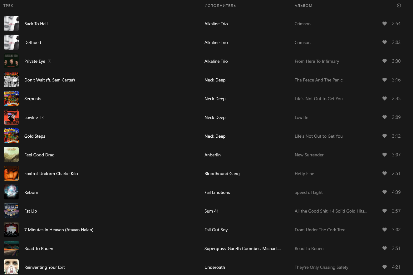 До сих пор слушаю то, что зашло в подростковом возрасте (и то, вся эта музыка в основном выпущена лет 20 назад, еще до моего рождения лол). Как перестала сидеть на last.fm пропал азарт поиска новых групп. Сейчас просто умиротворённо открываю плейлистики под водочку настроение