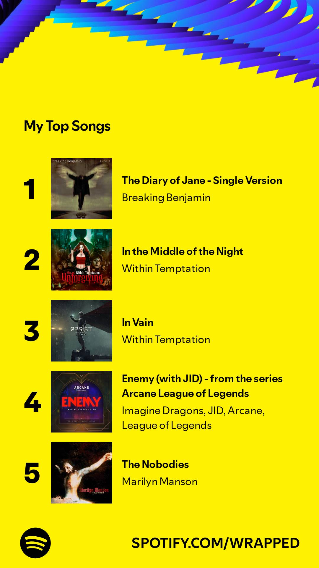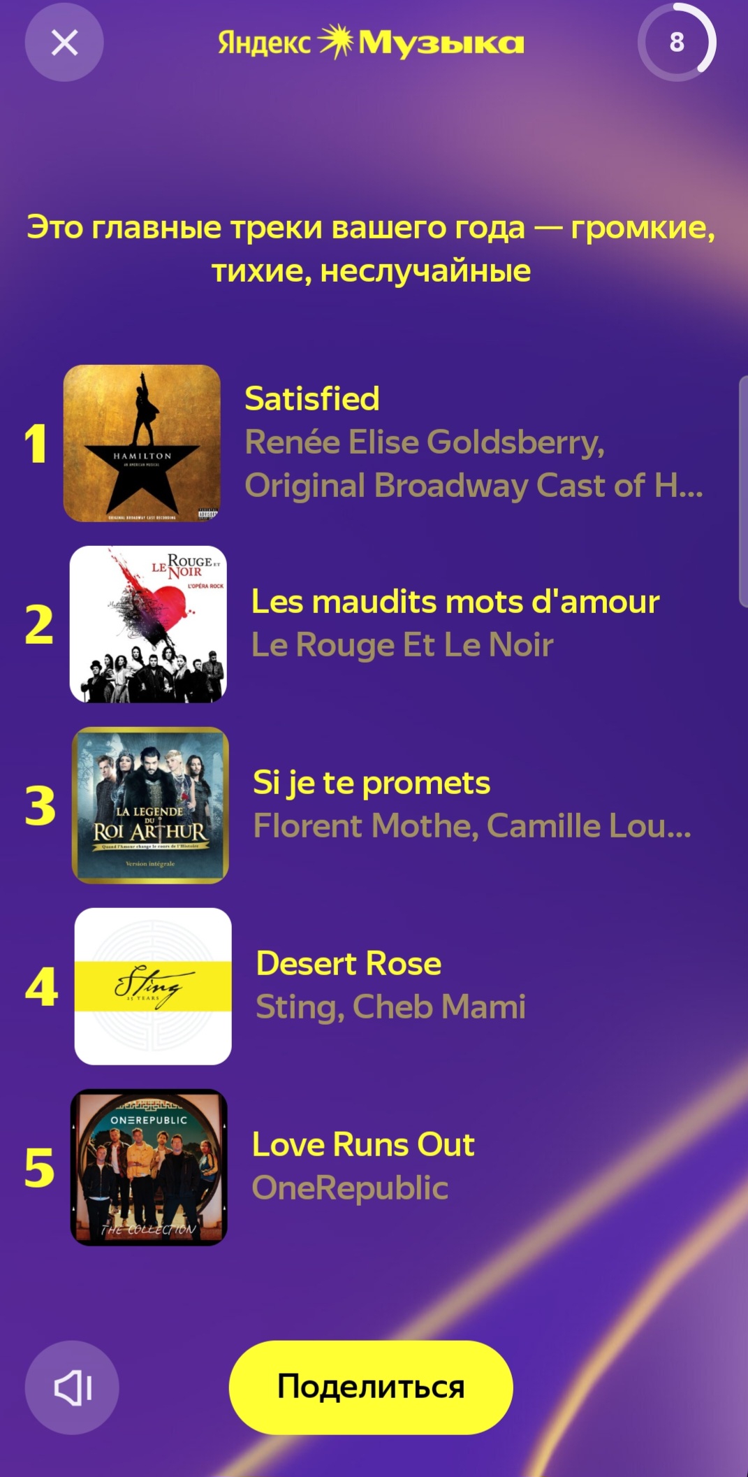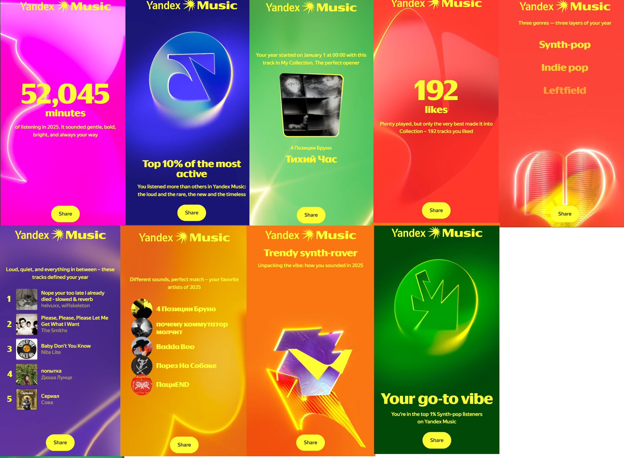 Ну такое, в этом году чёт неинтересно. Топ треки в топе просто потому, что это первые треки моих плейлистов, которые я просто врубаю с начала, поэтому они, естественно, играют чаще всего.