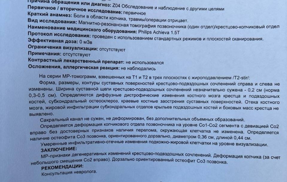 Во взрослом возрасте только шейно-воротниковой зоны делала мрт, ничего не было в заключении кроме начальных признаков остеохондроза.