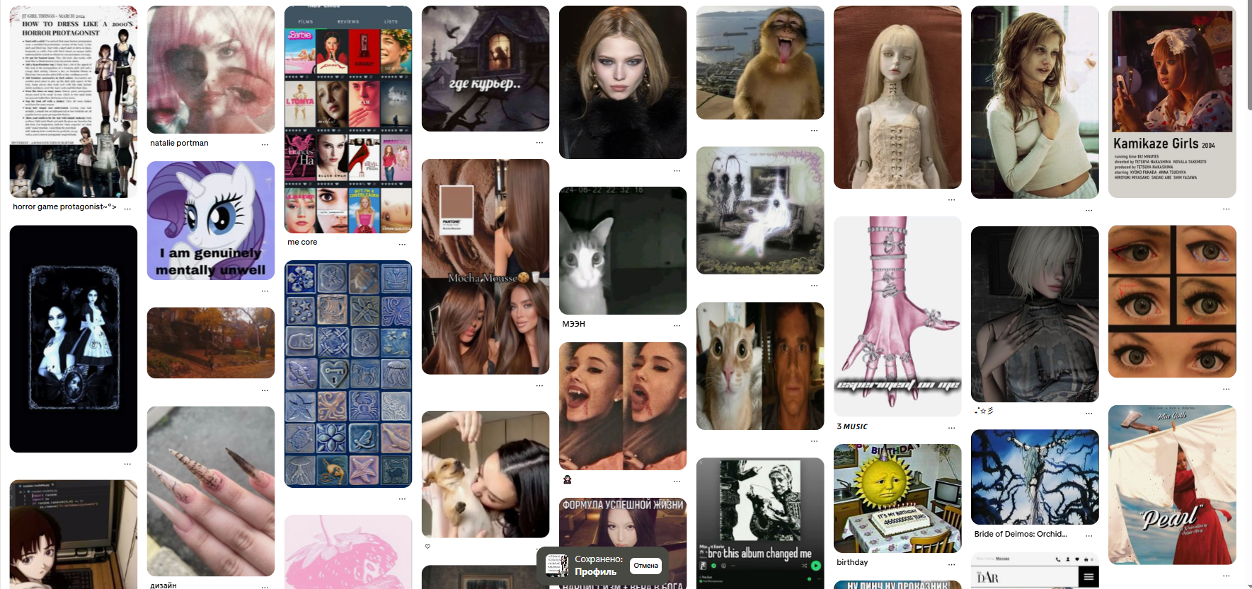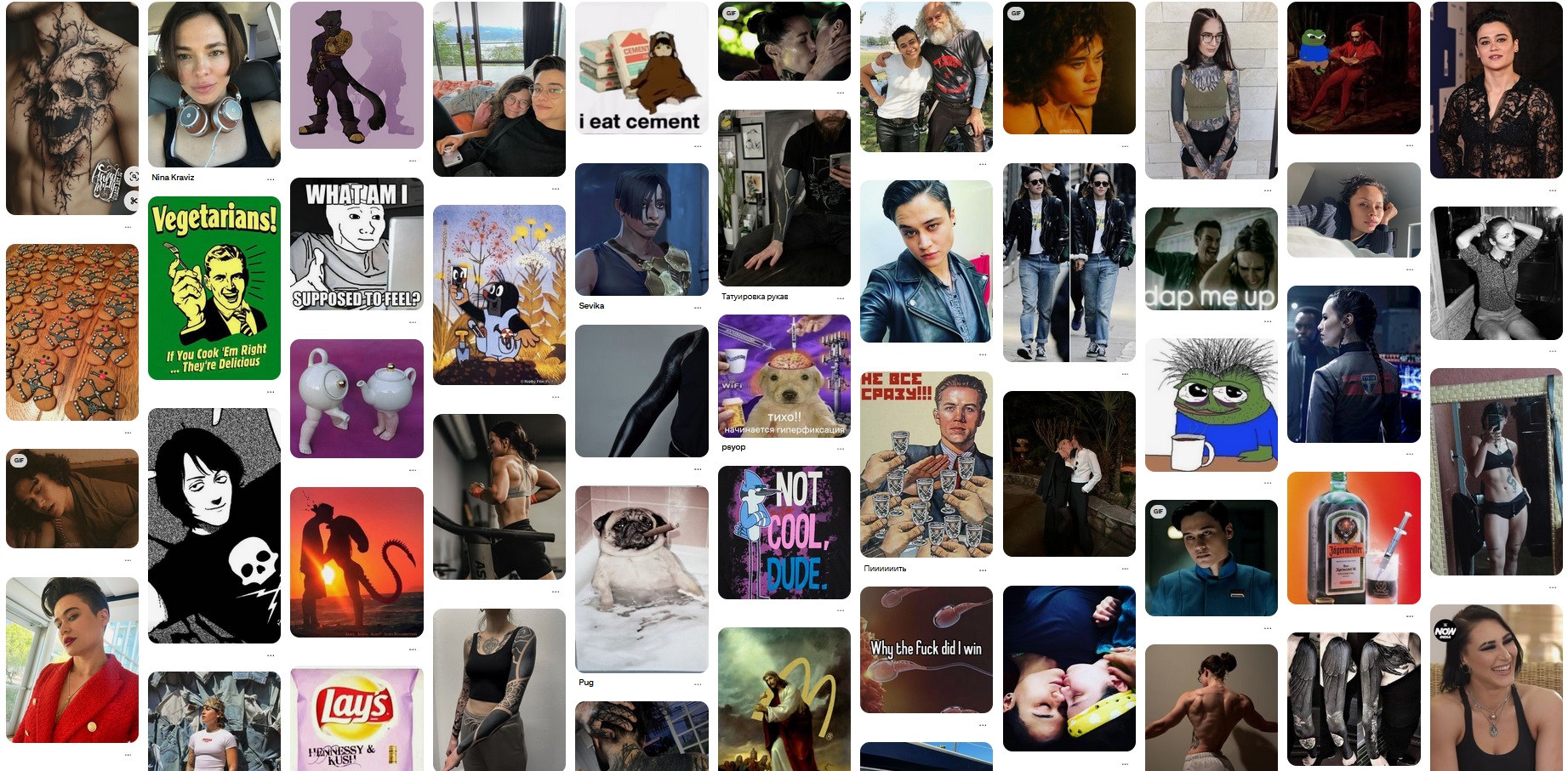 >>6288742 Неправда, я однажды скачала с пинтереста несколько тыщ эстетичных картинок, когда делала сезонный коллаж для хасутреда. А так мне пинтерест 2 раза в день на мыло картинки шлет на подрочить