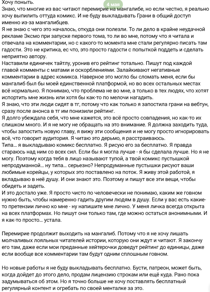 Оно выходит бесплатно с запозданием, можете ознакомиться. Авторша очень не любит критику, бегает за каждым пукнувшим в сторону комикса и банит, банит, банит, везде всех банит https://mangalib.me/ru/manga/118447--the-truce а потом ноет в телеге, что все неблагодарные твари, вместо нести деньги, ставят ей единички