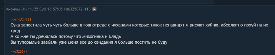 >>6325431 Сука запостила чуть чуть больше в говнотреде с чуханами которые тянок ненавидят и рисуют хуйню, абсолютно похуй на их тред А ко мне ты доебалась потому что мизогинка и блядь Вы тупорылые заебали уже меня все до свидания я больше постить не буду