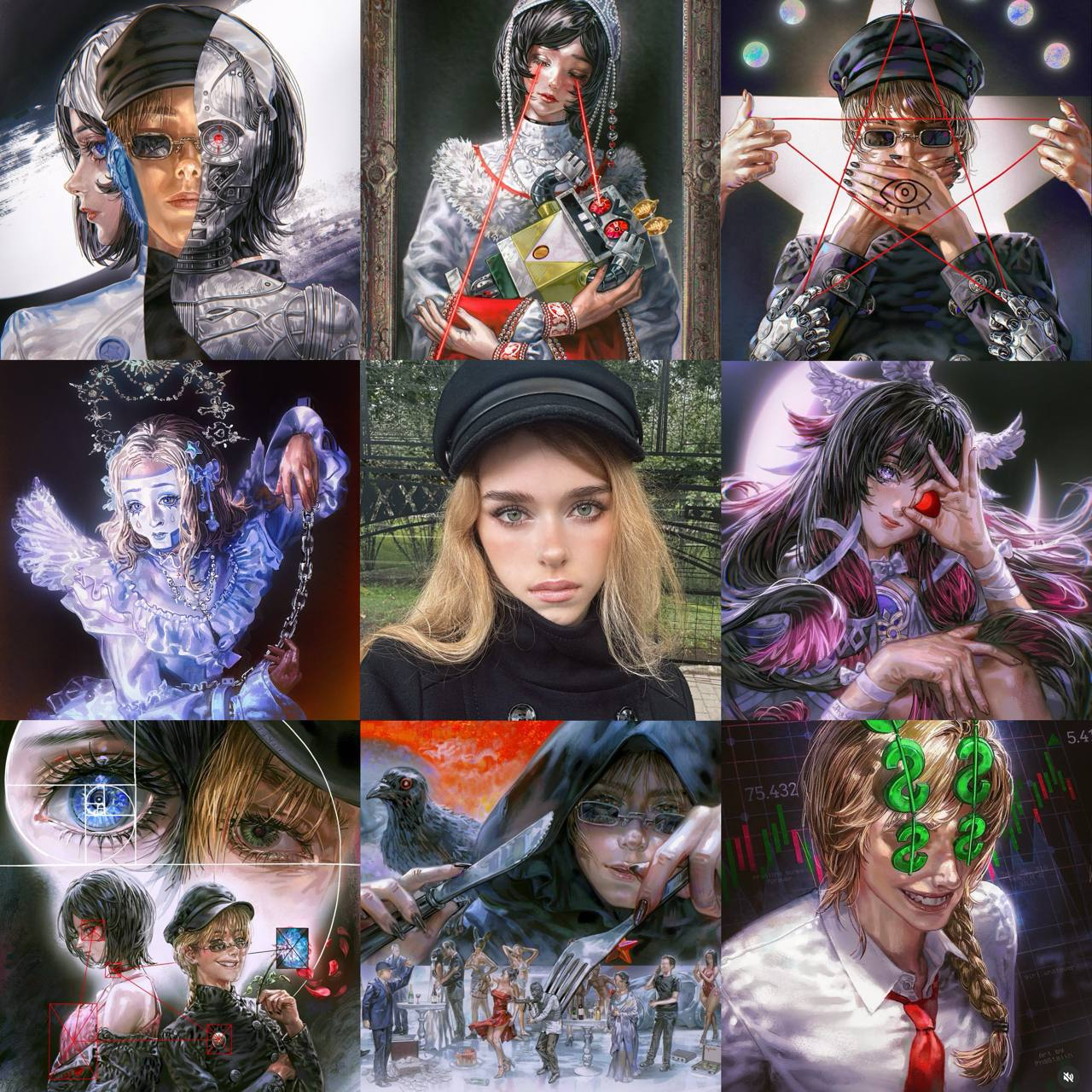 А потом просто натыкаюсь на талантливую школьницу с красивым лицом, социальную, в чьей работе чувствуется юмор и острота и всё это с гарниром отточенной техники и соусом глубинных символов, и понимаю, какая же я аутистка и рисование моё аутистичное, медлительное, лишённое юмора и прочее, прочее. Но всё равно я буду рисовать и тратить всё своё время на это, прямо как на 4 пикриле.