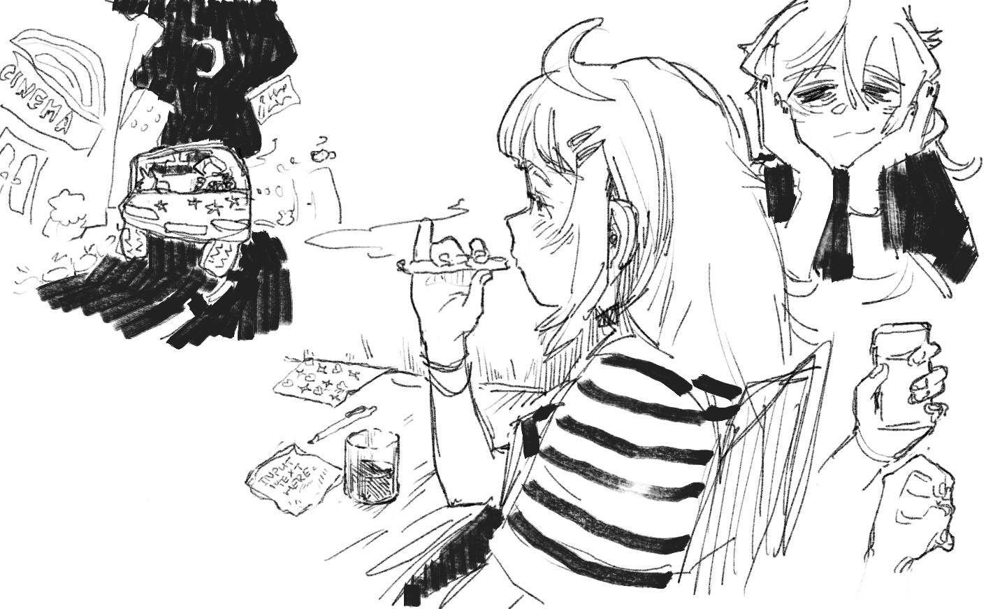 Вообще я часто думаю, как докатилась до жизни такой. На лекциях рисую. После школы рисую. И сколько помню, просили рассказать о себе - "ну, я рисую". Когда вышла в свободное плавание, даже об этом перестала рассказывать. Но рисовать всё равно продолжаю, хотя и не могу до конца выразить, что я пытаюсь сказать. Просто рассудок убывает, когда перестаю рисовать. Особенно ненавижу момент, когда заканчиваю какую-то работу, выкладываю её, немного развлекают просмотры, но это такое краткое чувство удовлетворения, а потом и вовсе терпеть не можешь всё и надо дальше, больше рисовать, больше стадиков, чтобы лучше передавать то, что происходит в голове.