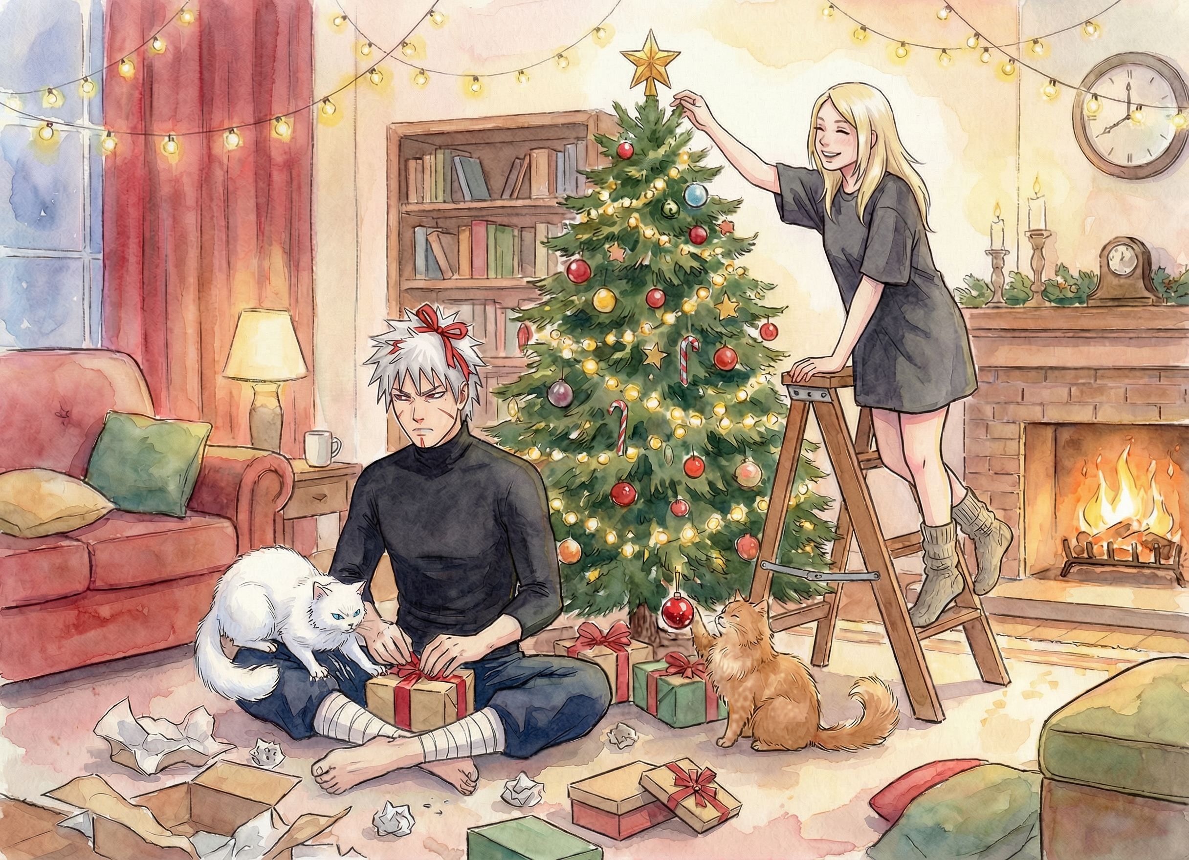 >>6376491 Украшали вместе. Я убиралась пока хасу притащил ёлку и доставал коробку украшений. Хасу неприхотлив в плане украшений, ему дизайн не важен если делаем всё вместе. Он наматывал гирлянду, я вешала шарики и ставила звезду.