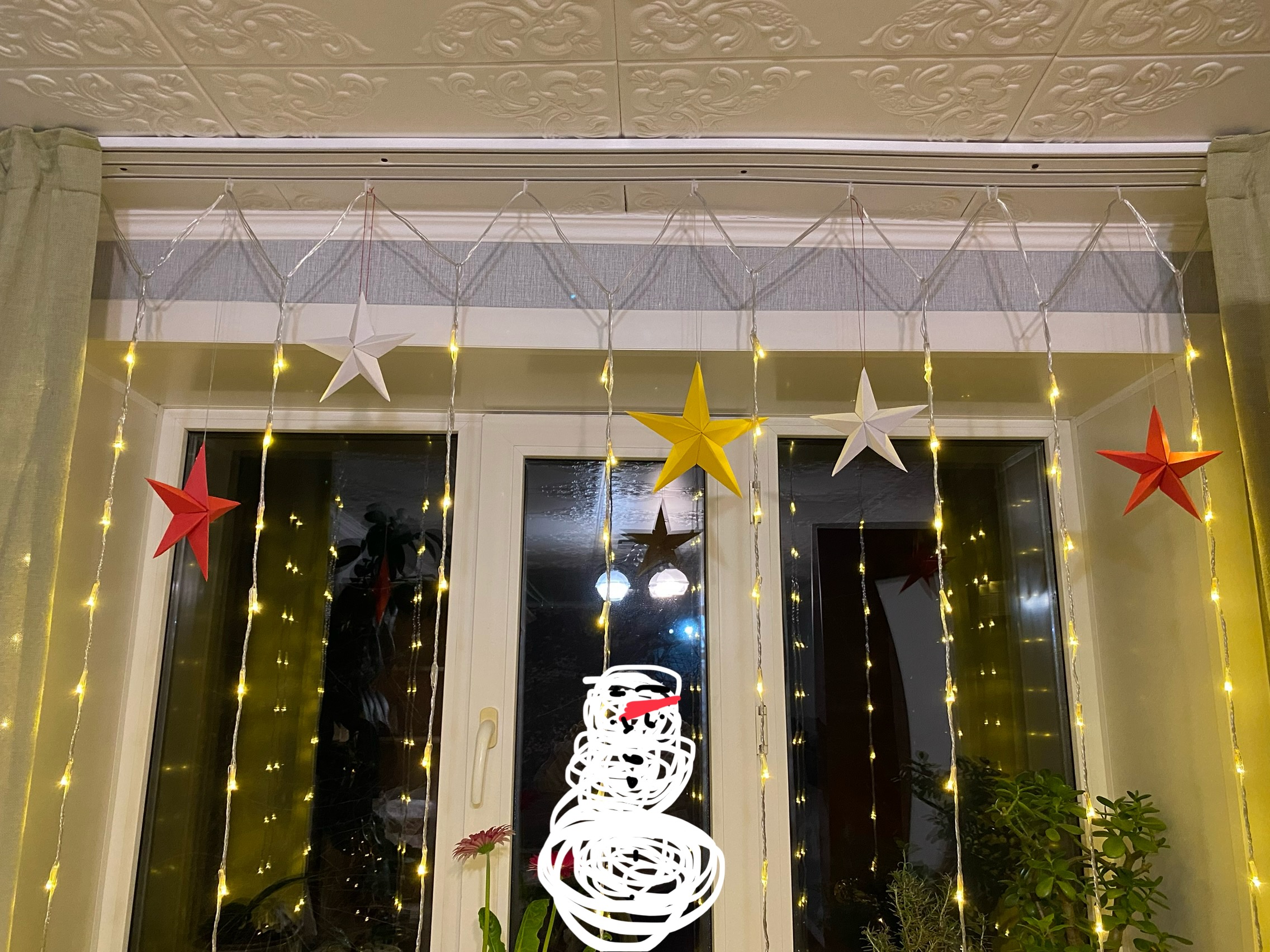 видела в фикспрайсе за сотку (наверняка и на маркетплейсах есть) такие штучки на окна/зеркала, ловец света, типа витражного стекла получается. это не наклейки, за счёт статического электричества прилипают. в форме снежинок, ёлочек, мишек, домиков и тп. из них можно при желании доп узоры вырезать. мне очень понравилось, в новой квартире пусто и нечего украшать, а такие штучки прям +вайбик.