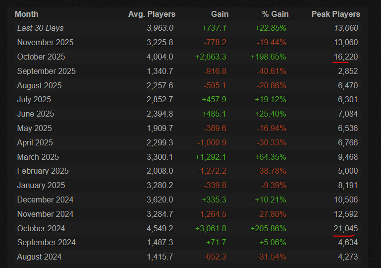 >>6370327 А, это не первый день оказывается. А энивей что произошло то? Потому что обычно на синглы без каких-либо коопов онлайнов всем строго похуй через несколько месяцев после выхода, все уже прошли сюжетку кто хотел, а высиживать в игре дальше 25/8 смысла нет. Вон у той же облы ремастера 2 месяца после выхода онлайн подержался, все наигрались, теперь там онлайн 3-5 тыщ. У детройта в 20 году как вышел на пк онлайн был хер да маленько, а в 2024 вдруг бац. Нипанимат.