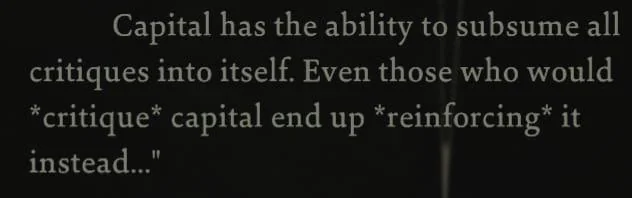 >>6383168 Бляяя я даже не знала, что у них мерч есть. Мусорный пакет за 159 евро в качестве мерча к игре, насквозь пронизанной критикой капитализма, и всё это в то время как сценарист собирает подаяния на gofundme тупо на еду, т.к. до сих пор судится с компанией. Сука какая же ирония.