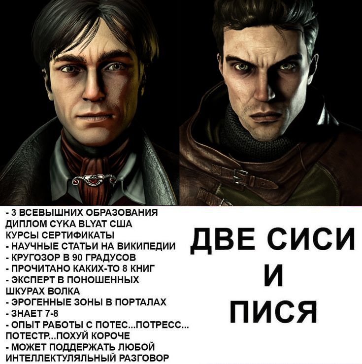 >>6377864 > Ты, небось, еще и Круцио позволила себя ебануть? Потом пожалееешььь. Меня Себа бесит заебал со своей сестрой, но я тоже позволила ебануть. Как-то пытать пиздюков неэтично, тем более нужно искренне желать причинить боль, а это не в моём характере. Но лично мне гнильцой запахло уже на этом моменте. Типа, ему нормально хотеть причинить мне боль? А? И мне нормально? Вообще такое чувство, что он общается со мной только ради древней магии, так что пошёл он нахуй. Ни одного бро или сис в этой блядской игре.