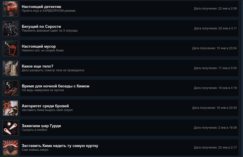 Засирала тут Диско Элизиум, а вот взяла и наиграла от скуки ещё 3 прохождения ради ачивок, лол. Но всё равно только 27 из 45, больше не хочу.