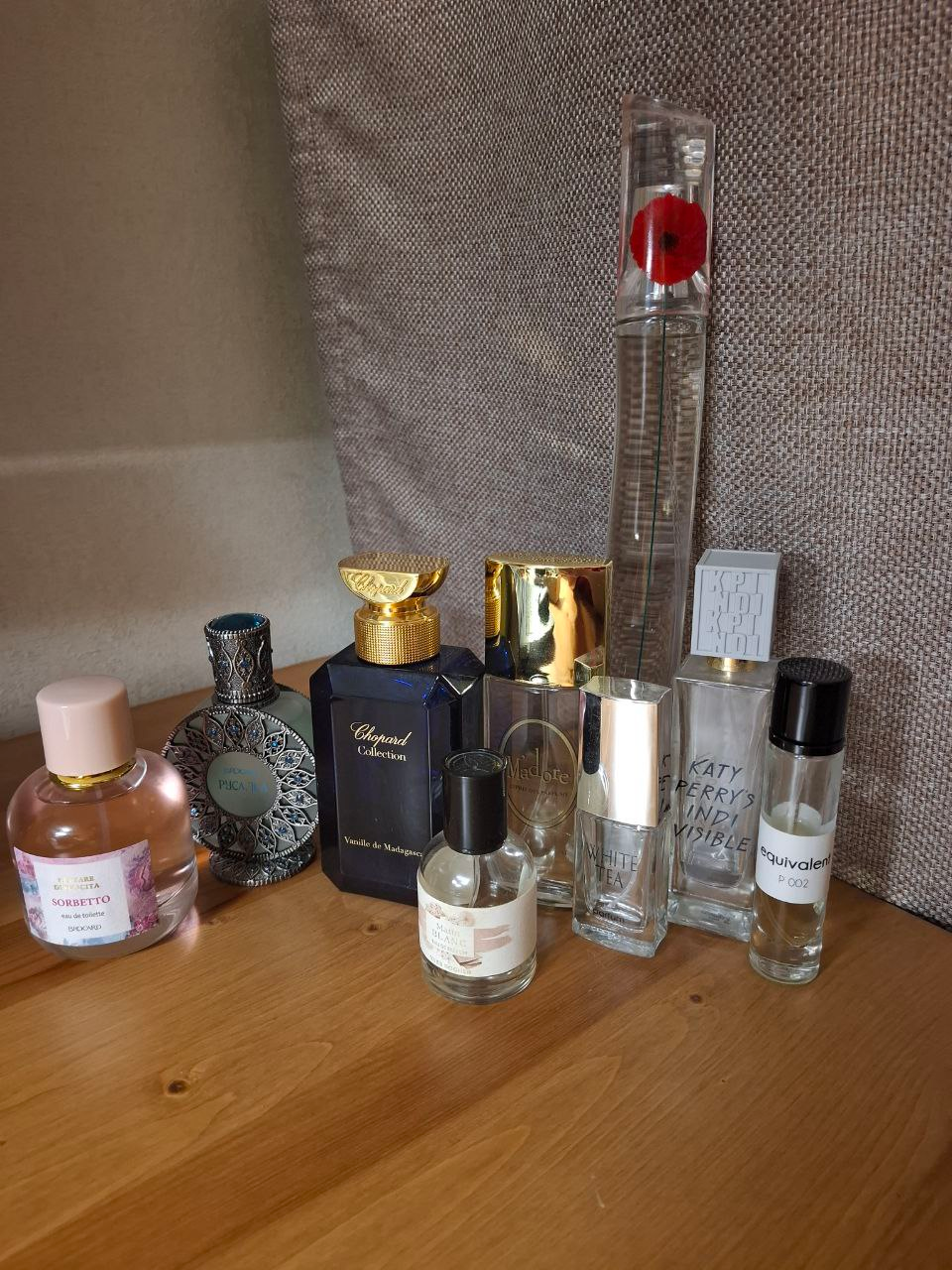 Меня в последнее время раздражает моя коллекция. Собрала штук 30+ флаконов и дохуя миниатюр, и большинством флаконов по итогу не пользовалась чаще пары раз. Хотя очень нравились и миниатюры все расходовала, а сейчас будто не попадают в настроение и образ, будто не про меня. Хочется всё продать, выбрать себе штук 10 самых подходящих и поливаться только ими, пока не кончатся. Обидно