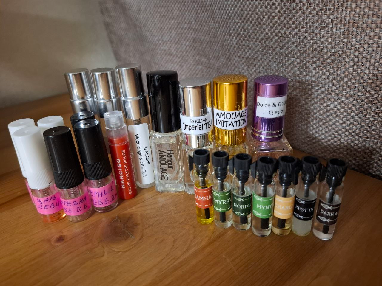 Первым рандомно заказала отливант Imitation. Вообще нужен был Imperial Tea от Killian, но там не хватало на заказ с доставкой, и я у этого же продавца взяла вдовесок амуаж Imitation, просто потому что она им делилась. Мы ещё притираемся. Смородина, альдегиды и ладан сшибают с ног при нанесении, поэтому даже не на себя, а в воздух перед собой. Других нот не чувствую. Пытаюсь понять на его примере, как я с ладаном вообще. Не в восторге, но иногда могу достать. Сильно вычурный повод должен быть, про него вот именно что хочется сказать, что аромат надела и выгуливаешь в свет. Нравится, что на фраге никаких похожих на него ароматов толком не выделили, то есть он один такой из себя.