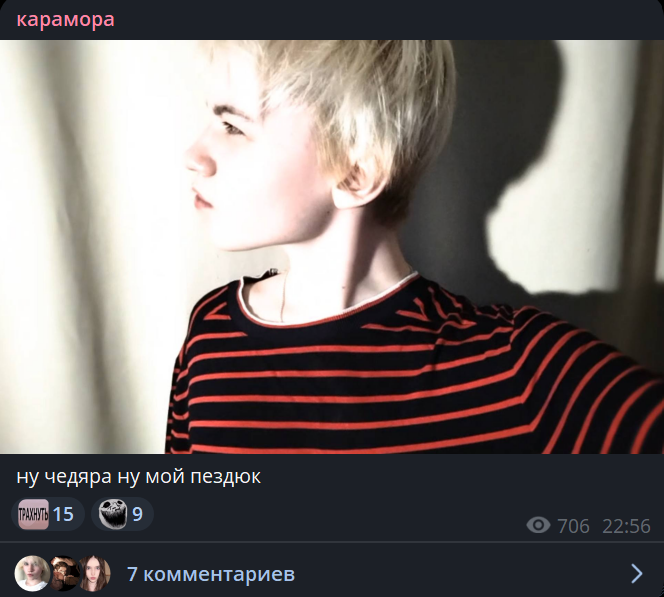 >>6379175 Кирилл калберг (он же голдберг) так же делает, травит просто рандомш в метро и на улицах. Доходило до почти отчислений из вуза и так далее Если ты невсратая тян 16-20 лет из Нижнего Новгорода, то если видишь рыжего уебка на пике, направляющего на тебя телефон, то закрывай лицо и убегай