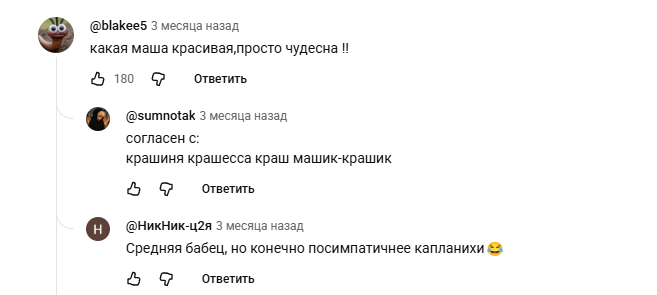 >>6392432 Я их пару только по подкастам знала, ваще с Юлая начала всю их тусовочку посматривать (Соню Хромову с Оксаной Флафф, Марусю Черничкину, Полинэ Кудрявцеву, Боярову), там еще такой комфортик чел мелькает, не помню его имя, увы.