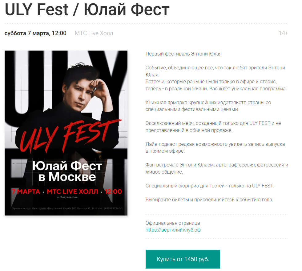 >>6392547 >ваще с Юлая начала всю их тусовочку посматривать Юлай чет совсем звезду словил. Делает свой фест в мтс live холле. Как думаете, соберет зал на 2000 мест к марту?