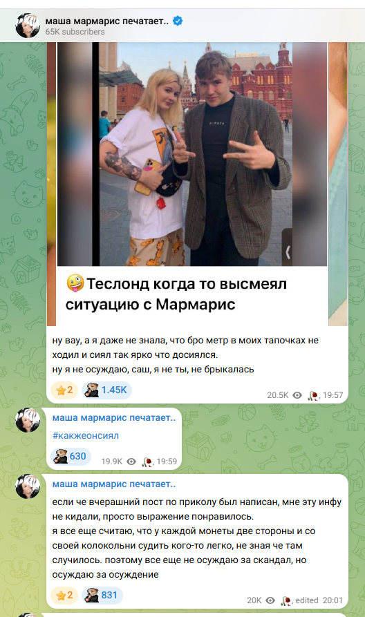 И вот Лиза и Теслонд так друг о друге пупунисто отзывались всегда, хот от Теслонда устойчивый вайб пидессы.