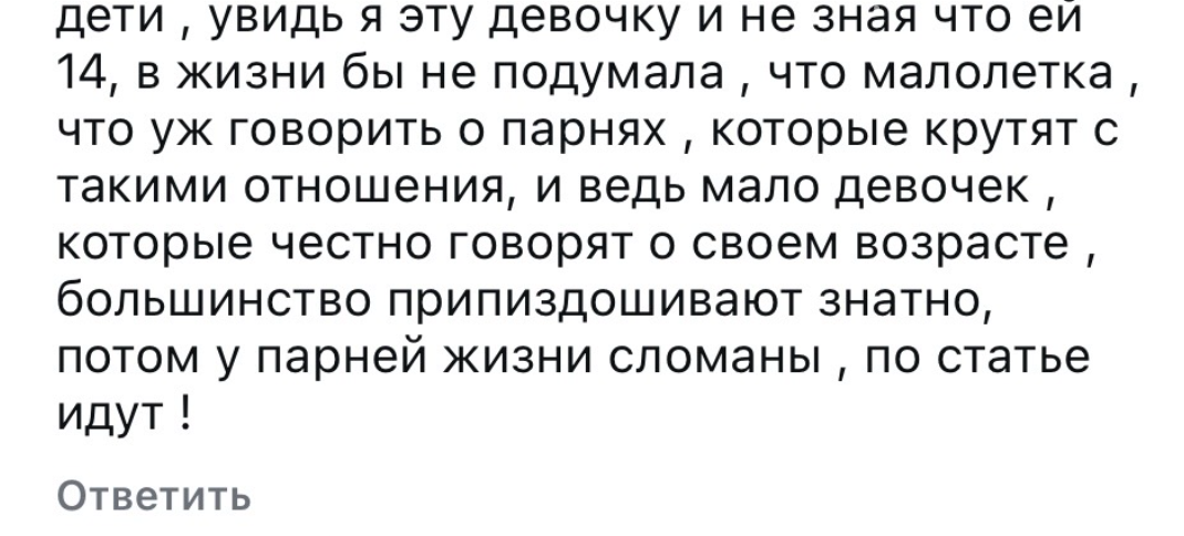>>6392924 Вот же мрази, так и до рпп можно затравить. Девочка лицом ребёнок ребёнком, просто тело развитое. Я в 13 лет была крупная (60 кг), мне из-за этого так стыдно было, потому что все вокруг были меньше и худее.