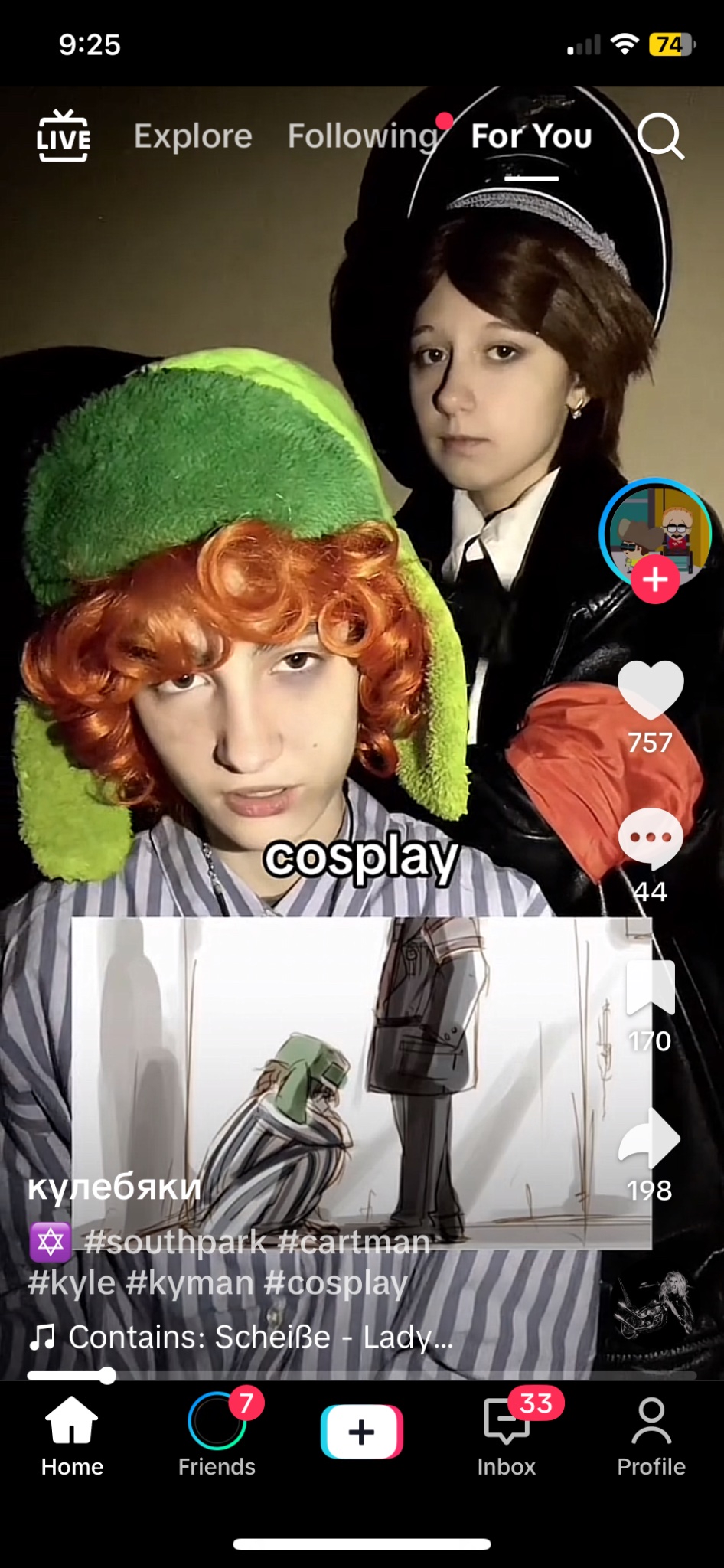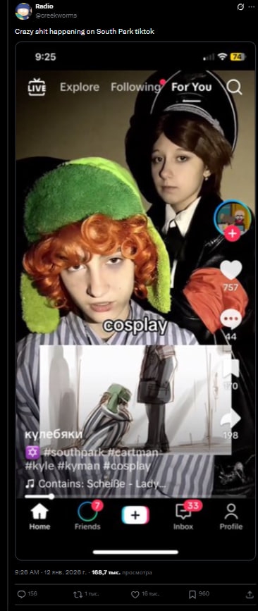 Ну это как посмотреть, если до конца серии, то там кайл и стен всю аморальщину разжуют для самых маленьких, и скажут прямо, что это было плохо. Не так уж аморально, совсем наоборот. Так что любители саус парка вполне могут осуждать даже этот косплей