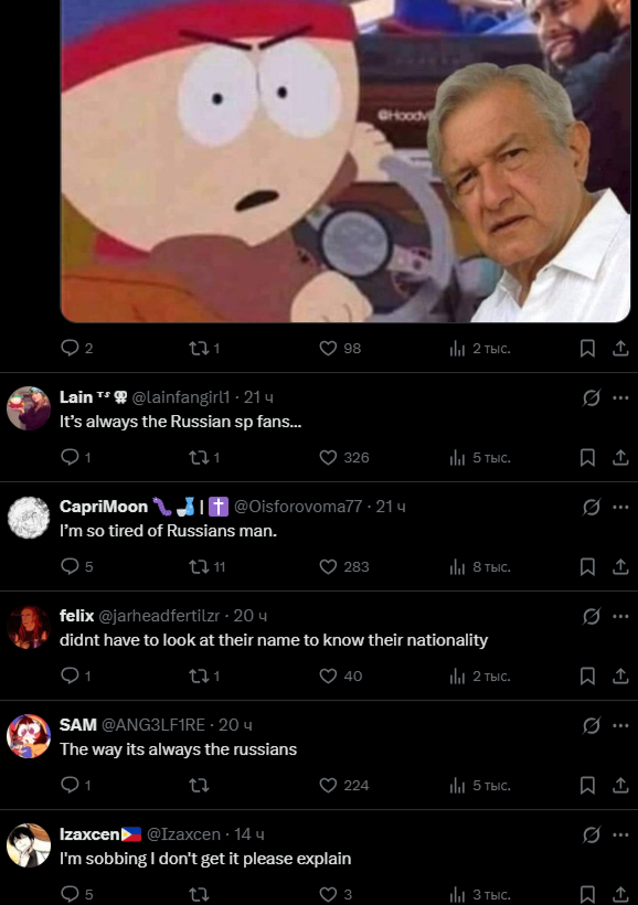 >>6409945 > Русреал еще приплели, лол А чем тебе русреал из скрпеного списка выбивается? Я тебе точно скажу, кого я в скрепные сисы отношу, сису, которая рвется раз в месяц на тему злого запада, ищет украинцев в треде и ругает повесточку Я без злобы к этому отношусь, мне похуй, но искренне не понимаю нахуй об этом думать и обсуждать