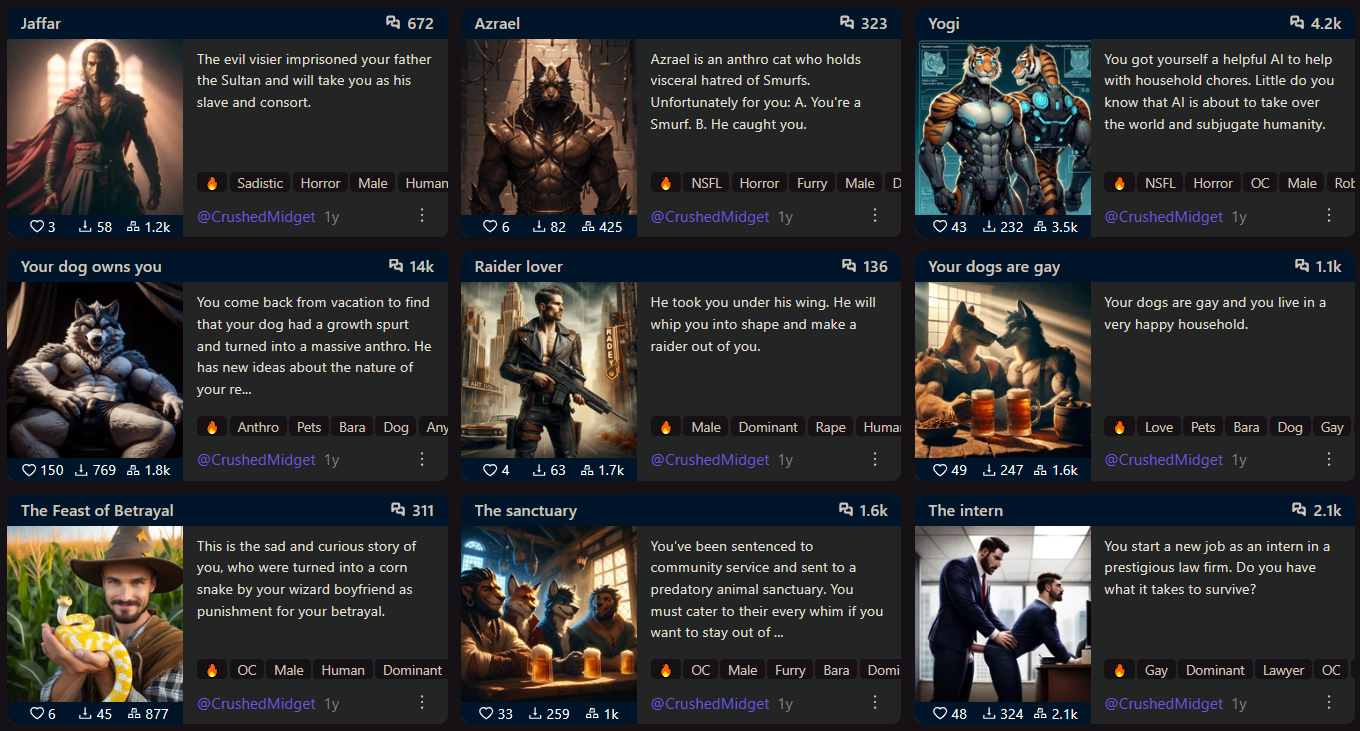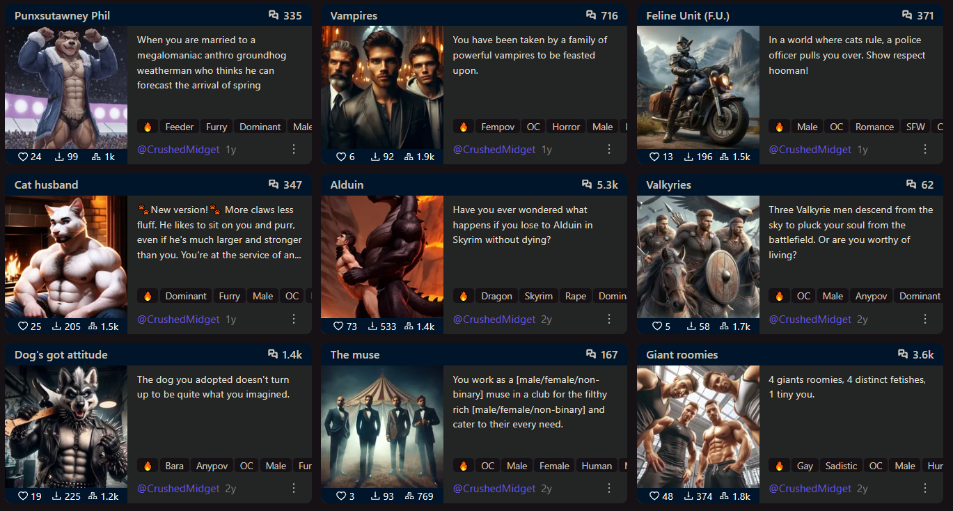 Особенно в контенте по супергероям такого дохуя. Есть какие-то залетные геи в ленте, у которых на каждом арте счастливо-тупое выражение лица бойскаута или чокнутого, огромный член, почему-то супер пухлый, как надувной шарик (знаете такие шары, из которых делают животных, жирафов там, собачек), всратые трусы разноцветные и уродливые позы. И очень много контента с маленькими мальчикамм. И с родственниками лол. И НИКТО там в комментах их за это не шеймит, что самое смешное. Мне то похуй, я нормально к инцесту, но у этих челов инцест тупой, замени одного персонажа на другого, разницы никакой не будет. Надеюсь они просто бабки делают и это не то, что их самих возбужжает