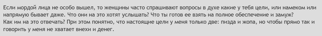 Это не высер чухана, но так на всякий случай, чтобы не забывали какой они скот. Вы только вдумайтесь. Бросить человека хуй знает где с голой жопой, только потому что пизду понюхать не дали. Им похуй на путешествие, похуй на то какие приключение вы прошли вместе, похуй на воспоминания. Не похуй только на еблю блять, ради которой он с жестокостью готов дропнуть человека и съебаться в закат.