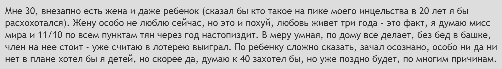 И опять же, исходя из твоего примера, у чедов в таких ситуациях активируется что-то вроде тёмной триады, а инцeлы уходят в чистое саморазрушение. Так что да, с чедами ИТА ДРУГОЕ!1!