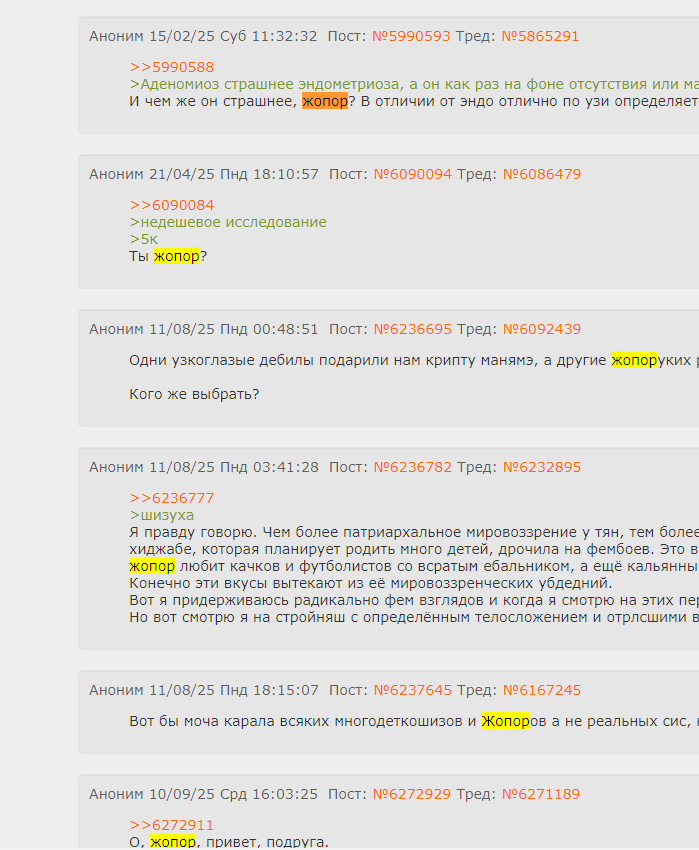 >>6409988 не могу понять, блять. появилась мысль, что все эти треды с ненавистью создаются одними и теми же людьми. одни и те же взгляды, что у инцелов, что тут, только в другой обёртке. "у тян нет мозга, они тупые, отсуствует эмпатия", "нет, это у кунов нет мозга, они тупые обезьяноподобные существа с 0 эмпатией". какого хуя так одинаково? может вам друг с другом встречаться тогда и вопрос будет закрыт?