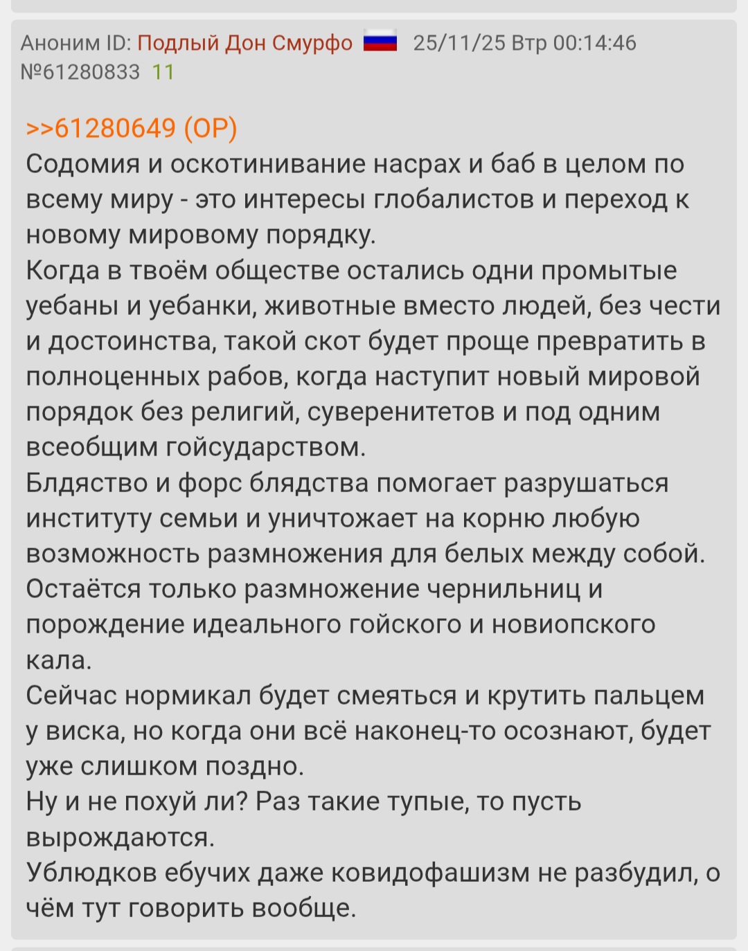 как же смешно читать переживания про упадок института семьи от чуханов, ну так выйди из дома и найди серую мышку, которая мечтает о семье и детях, таких много, но нет, он будет срать на дваче, потому что для такого шага нужно хотя бы заговорить с настоящей женщиной, не считая мамы
