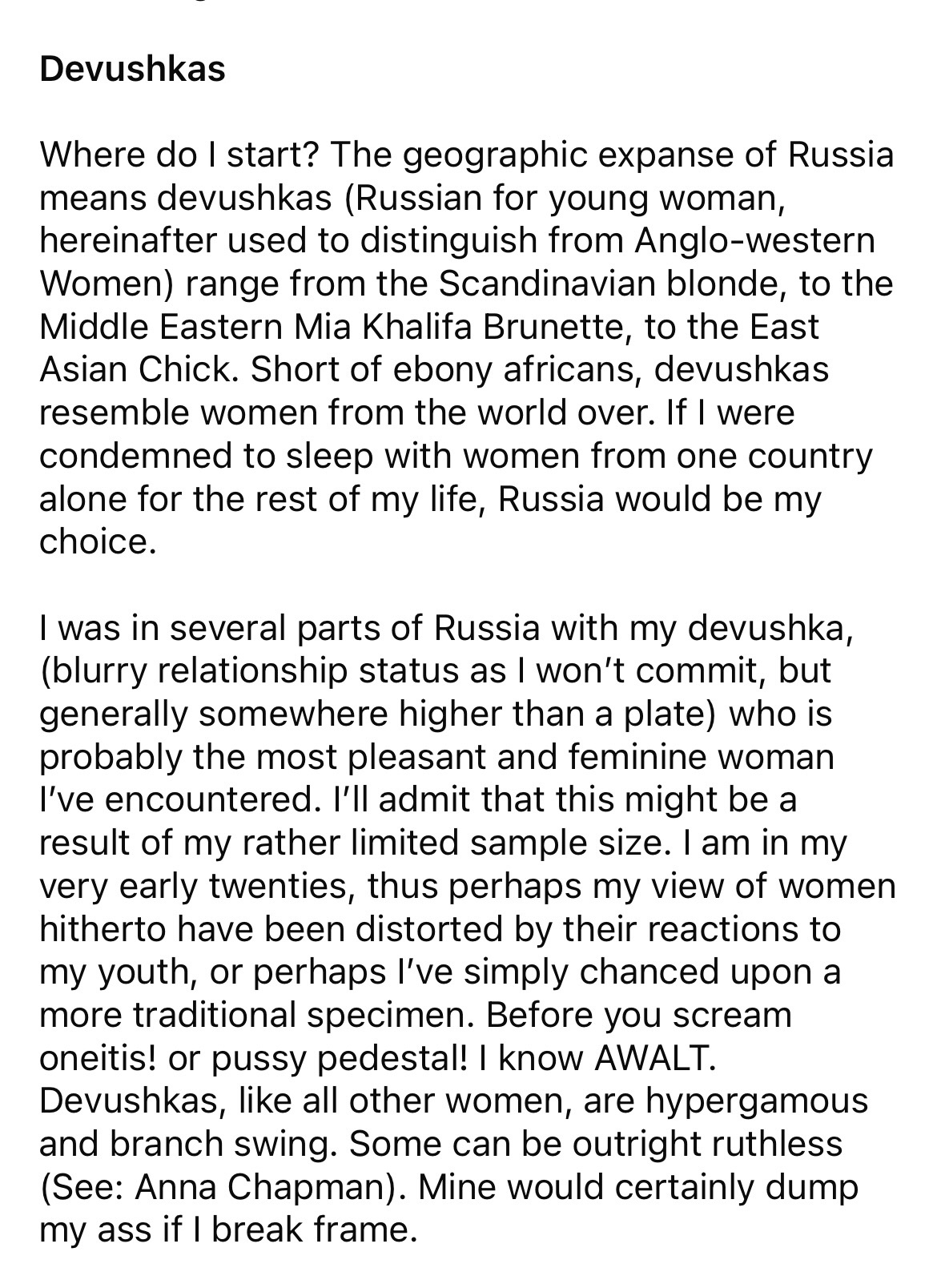 >>6404469 Кто это говорит? Буквально горстка неудачников чуханов на дваче? Я реально просто не знаю где можно еще набраться тактх взглядов кроме сообществ инселов лошков, буквально все общество с детства внушает что женственность нужна. А те кто копротивляется против изначально пикмухи, так вижу