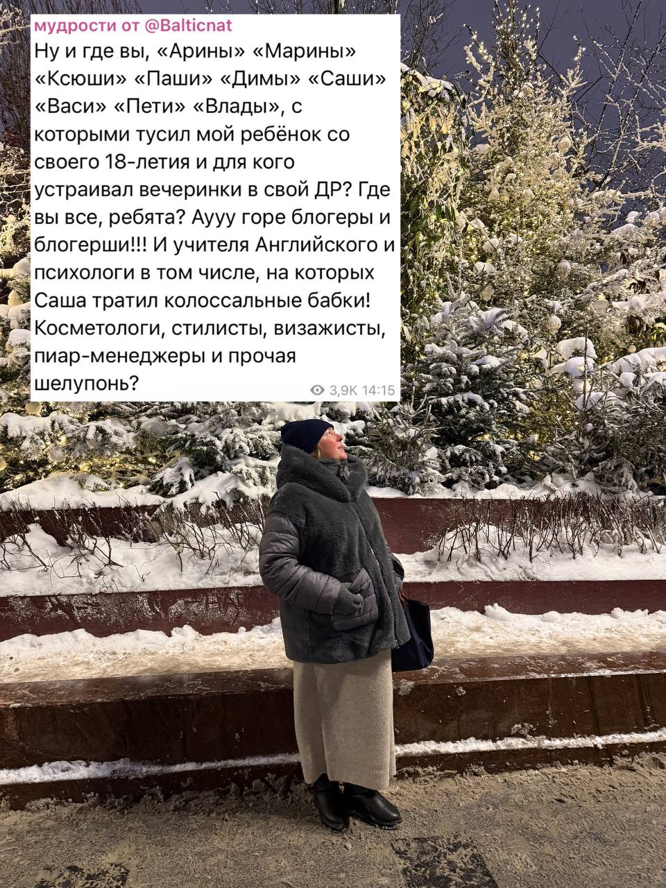 >>6406828 Я видела эту тян в инсте, она недавно развелась с мужем с которым дохуя лет были и правда сидит коупит как кайфово ей. Ну может не надо было таких выбирать, она рано вышла замуж насколько я помню, красивая видная тян, где глаза то были уж что что а 10см редис трудно было незаметить до женитьбы. Вообще такая риторика у разочарованных часто, ну им зочется коупить. Мужики тоже мдшниками становятся после развода лол. Да даже поздняков шизанулся как его девушка бросила Это простл бесконечный круг ненависти где обиженки сидят друг друга еще больше дергают