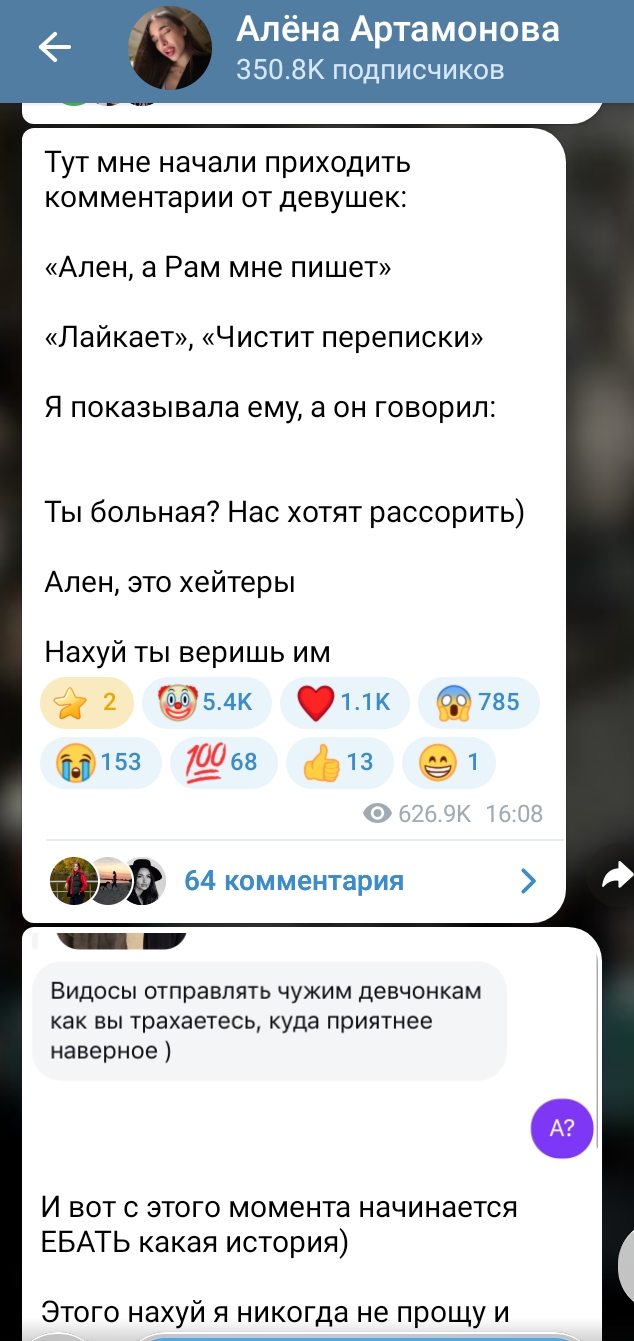 Хотя и раньше псиопа могли накидать. У меня в начале десятых была знакомая, популярная в нашем небольшом городе неформалка. Кому-то она видимо перешла дорогу и про неё похожий псиоп сочинили. Ещё создали фейковую страницу вк от её имени, накрутили подписоты и лайков больше чем у неё, и писали, что её настоящая страничка фейковая, а вот эта фейковая - единственная реальная. Расписывали там прайс на секс-услуги, кидали прон якобы с ней, где виден затылок только и невозможно понять она это или нет. В городских пабликах срали этой «рекламой». Её потом чуть с учёбы не отчислили, заставляли «убрать это». А как уберёшь, если это левые сделали? Тоже хорошо так жизнь попортили. Хотя она добрая очень и неконфликтная абсолютно.