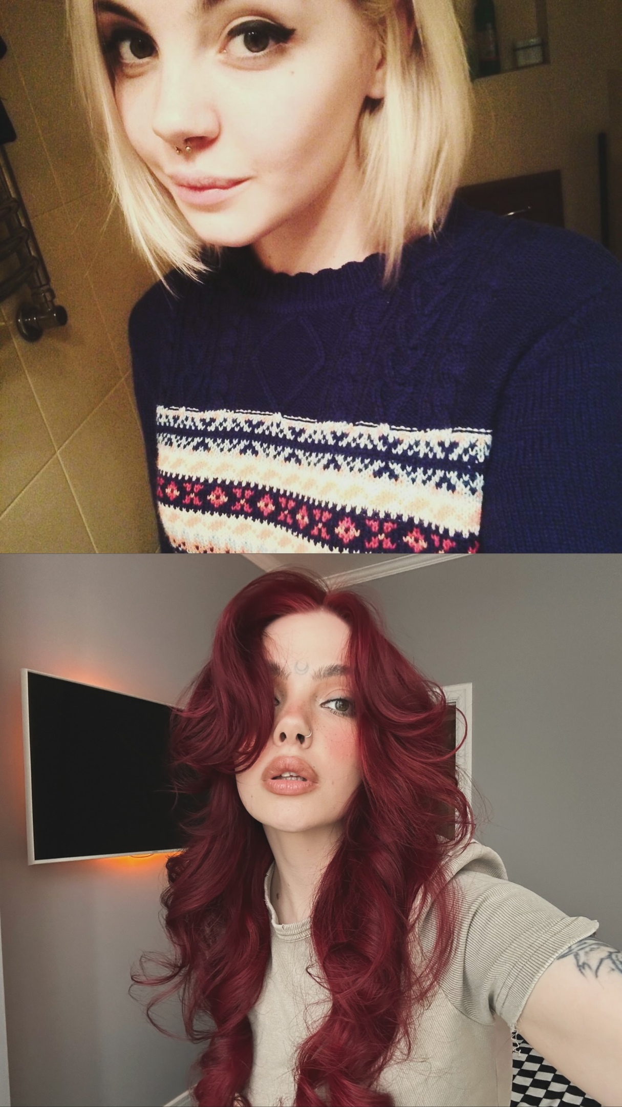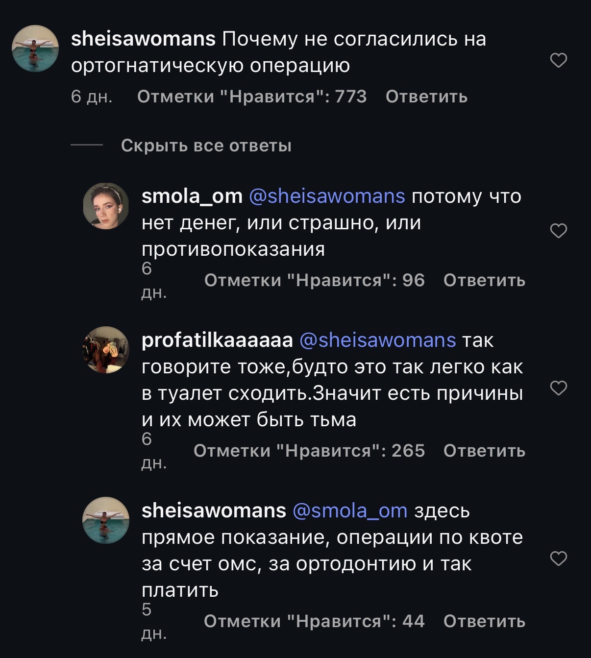 Все-таки там много походов к косметологу. От такого резкого и сильного похудения, как у нее, должна остаться провисающая кожа, в том числе на лице+ морщины. Обычно заметно у быстро похудевших девочек проступают заломы вокруг рта, причем это похудение там на +-10кг, у даси и их даже нет. В ее случае должно было остаться что-то похожее на брыли. То что их нет и не было никогда, явно указывает на то, что с кожей она у косметолога что-то серьезное делала. Мб круговая подтяжка+филеры. Про губы, которые она всегда делала, я молчу. Мне кажется, что с носом еще что-то произошло, но мб контурит просто по-другому. Очень много женщин внезапно станет стейсярами, если будут столько же бабла, сколько дася, вбухивать в свою внешку