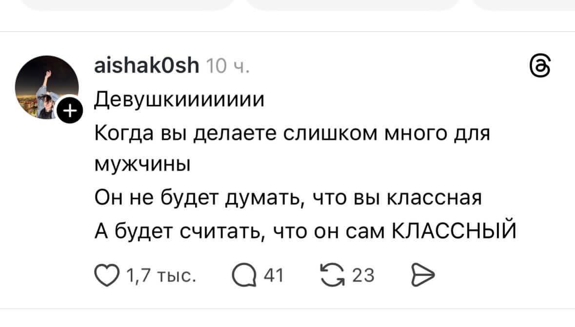 Блять, весь смысл был в том, что это кринж и подстильство выставлять на всеобщее обозрение в рилс свое спасибо мужу за гречу, типа она такая не как остальные меркантилки, а жопор как обычно хуйню развела