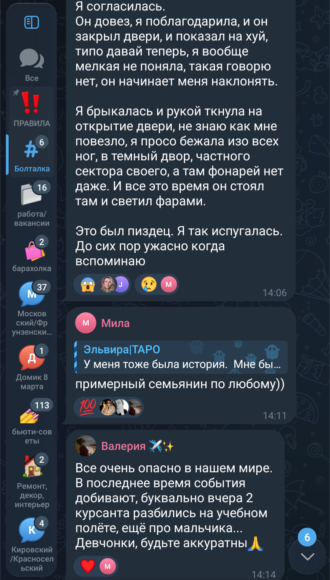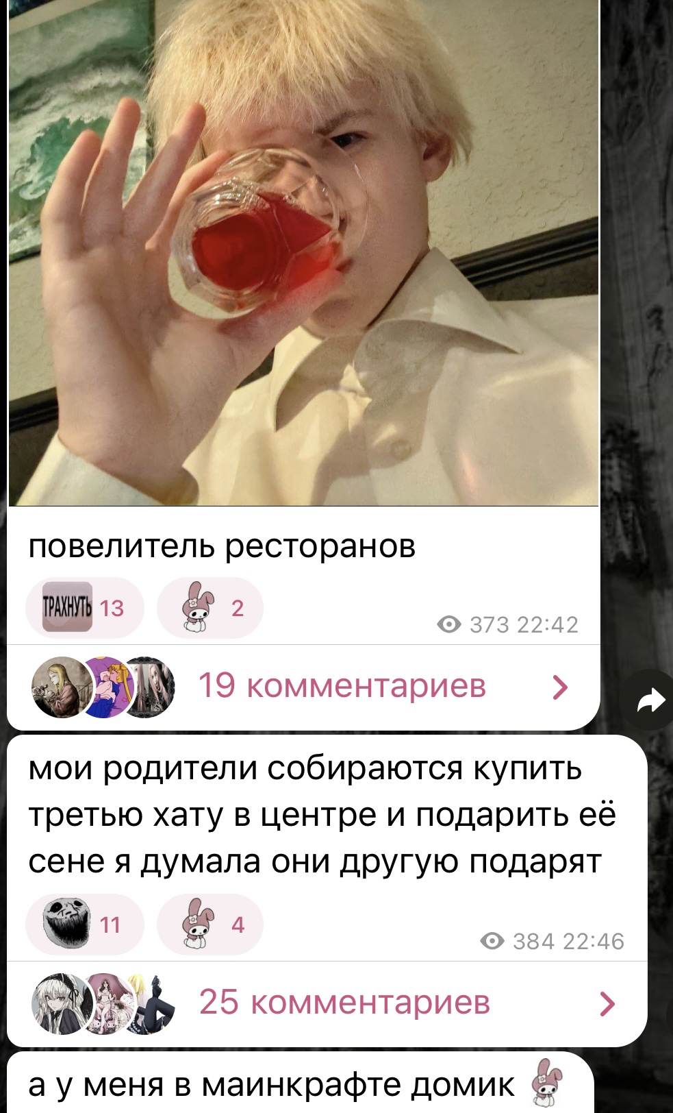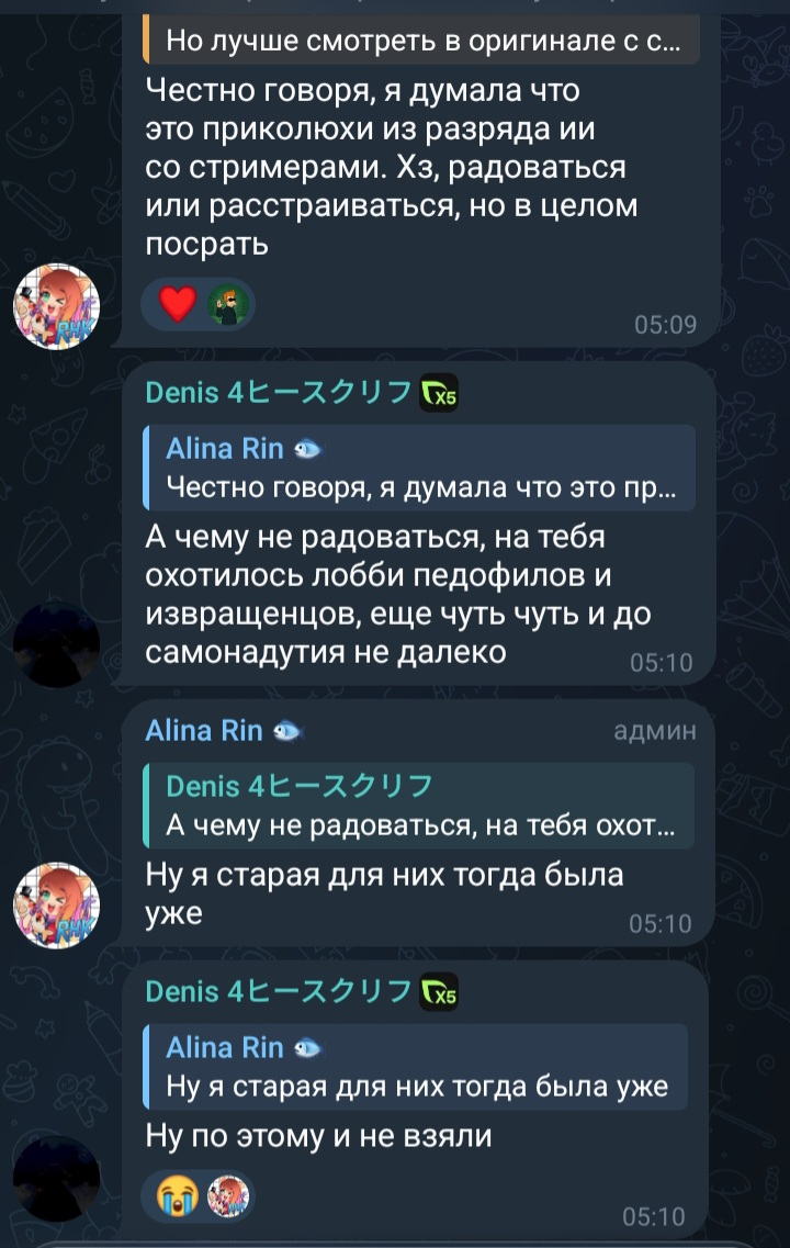 >>6424995 А ты точно весь лор описала или только скрины притащила? Ты не забыла упомянуть что Карочмо затягивает в простиутцию малолеток? Что скрывает свои истинные доходы? Что врёт о том что спрос есть, хотя в чате проститни пишет, что на мели? Что открыто говорит об употребе зная что на нее подписаны школьницы? Что спит с женатыми это похуй, это не самое страшное.