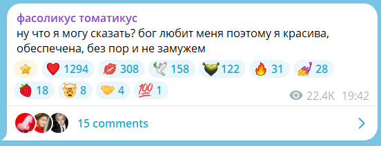 Катя все таки легенда. Поджечь пукан Карочму, Сеньке и их хомякам так, что они не могут успокоиться несколько месяцев. Причем безуспешно скидывают ее фотки, только подтверждая, что не всегда хейтеры это всратки