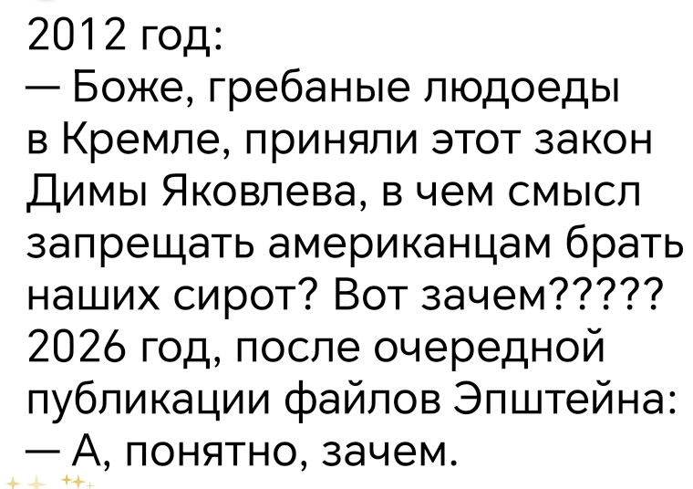 Спасибо сисам, которые приносят инфу по Эпштейну. Это конечно полный пиздец, не могу поверить, что мы живём в настолько ублюдском мире, насколько системно безумное насилие над детьми.