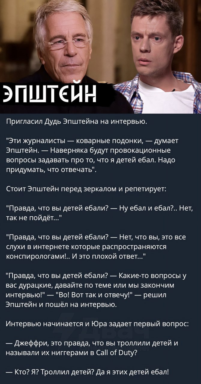 >>6422992 Ага, федералы от нехуй делать расследовали и собирали доки и 15-20 лет держали их в секретности от общественности и принца эндрю просто так лишили титула "Из файлов Эпштейна следует, что принц Эндрю купил ребенка у Эпштейна, изнасиловал и убил его в ходе ритуального убийства. Предполагается, что это стало причиной беспрецедентного шага Букингемского дворца. Принц Эндрю был лишен всех титулов и королевского покровительства Британии"
