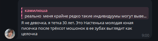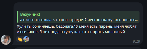 >>6425126 карамору вроде сдеанонили после того как ее подсос сенька зачем-то ответил катюхе. она могла ее просто забанить, но самолюбие не позволило. тем более катя написала правду, так что че они сгорели я хз