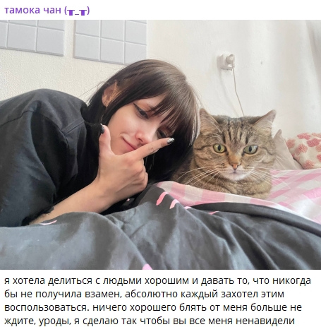 >>6426884 Сисы, вы пропустили. Там была жара, когда она подселила к себе девочку в квартиру и в соседней комнате душила себя, чуть не довела до суицида, жта тянка была в ахуе и не знала че делать с томой. И потом они еще разругались сильно. А так же я сохранила скрин про ее бывшего парня, который отслужив в армии, съебал в мск и кормил Тому обещаниями, что купит ей билет и вообще он ее очень сильно ждет. В итоге опрокинул, вешал лапшу на уши и до недавнего времени вешал и просил бабки на свои хотелки. Сорян сумбурно писала, скрины девушки парня томы